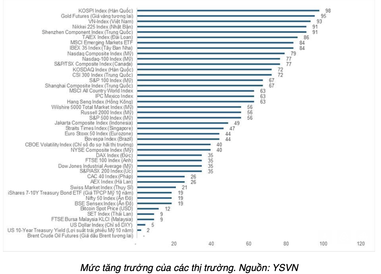 “Chúng tôi vẫn đánh giá tích cực về xu hướng ngắn hạn của thị trường chứng khoán toàn cầu mặc dù các chỉ báo rủi ro có dấu hiệu gia tăng nhẹ trong tuần qua. Do đó, nhà đầu tư vẫn có thể ưu tiên nắm giữ tỷ trọng cổ phiếu cao và vừa phòng thủ vào các tài sản an toàn như vàng, trái phiếu”, ông Nguyễn Thế Minh, Giám đốc Khối nghiên cứu và Phát triển khách hàng cá nhân, Công ty Chứng khoán Yuanta Việt Nam đánh giá.