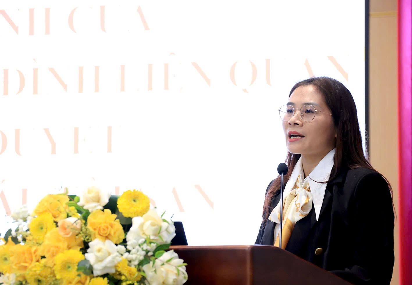 Bà Phạm Thị Khánh Toàn, Vụ Giám đốc kiểm tra III, Tòa án Nhân dân tối cao phát biểu tại hội nghị