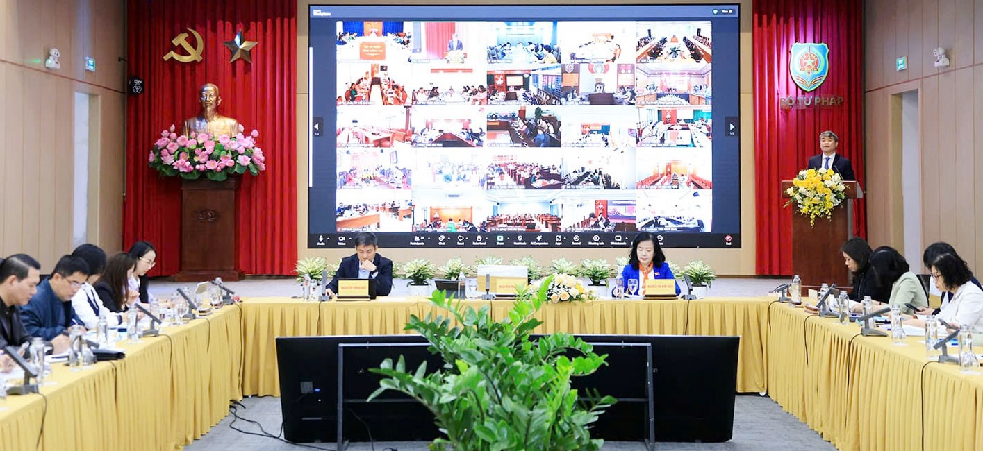 Thứ trưởng Bộ Tư pháp Nguyễn Thanh Tú phát biểu tại hội nghị