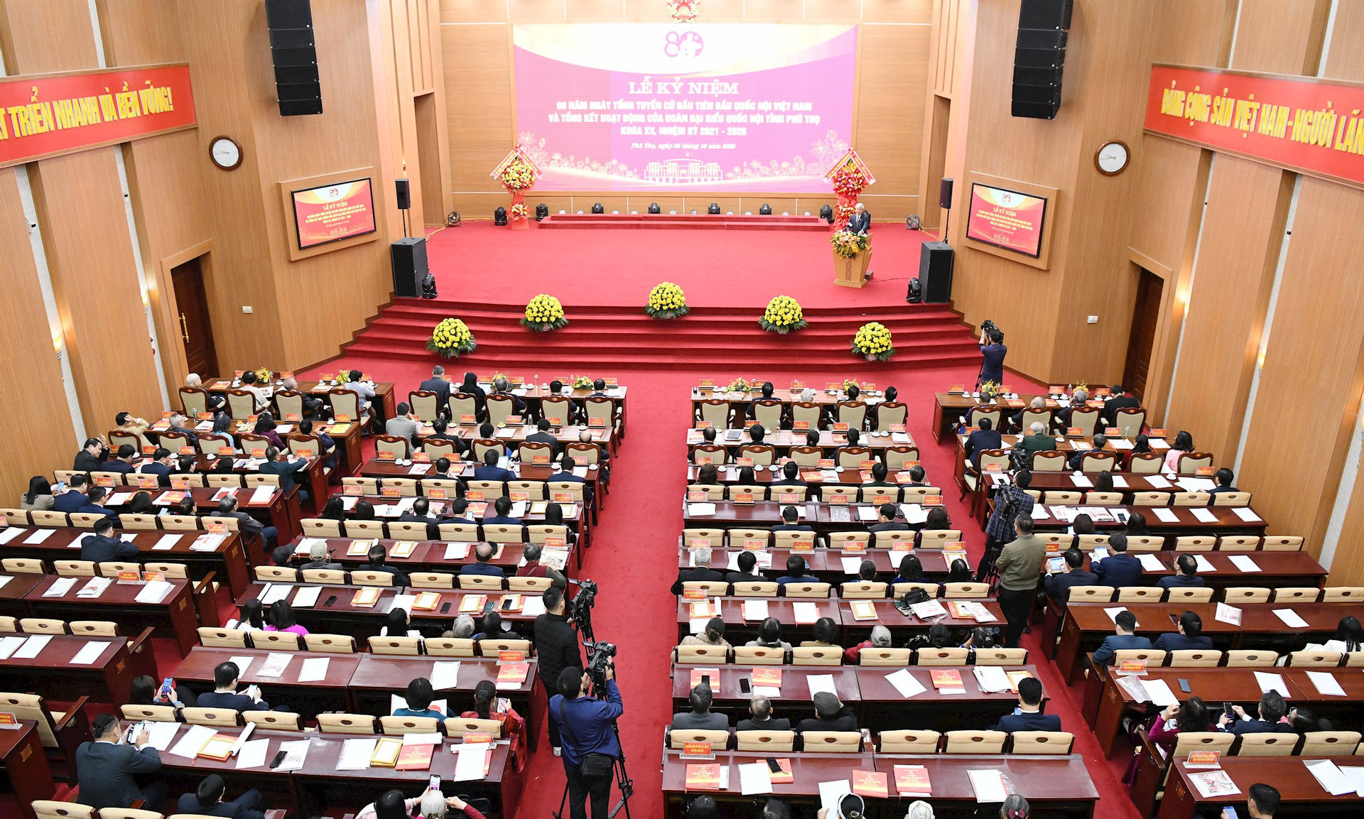 Phát biểu tại buổi lễ, Phó Chủ tịch Thường trực Quốc hội Đỗ Văn Chiến, nhấn mạnh, trong hành trình 80 năm của Quốc hội, tỉnh Phú Thọ đã đóng góp 332 đại biểu qua các thời kỳ. Riêng trong nhiệm kỳ khóa XV, Đoàn ĐBQH tỉnh Phú Thọ đã thể hiện rõ vai trò là "cánh tay nối dài" của nhân dân với những con số ấn tượng: 790 ý kiến phát biểu tại tổ và hội trường; 37 chuyên đề giám sát và hơn 60 chuyên đề khảo sát; Hơn 700 ý kiến, kiến nghị của cử tri được chuyển tải đến các cơ quan chức năng xem xét, giải quyết.