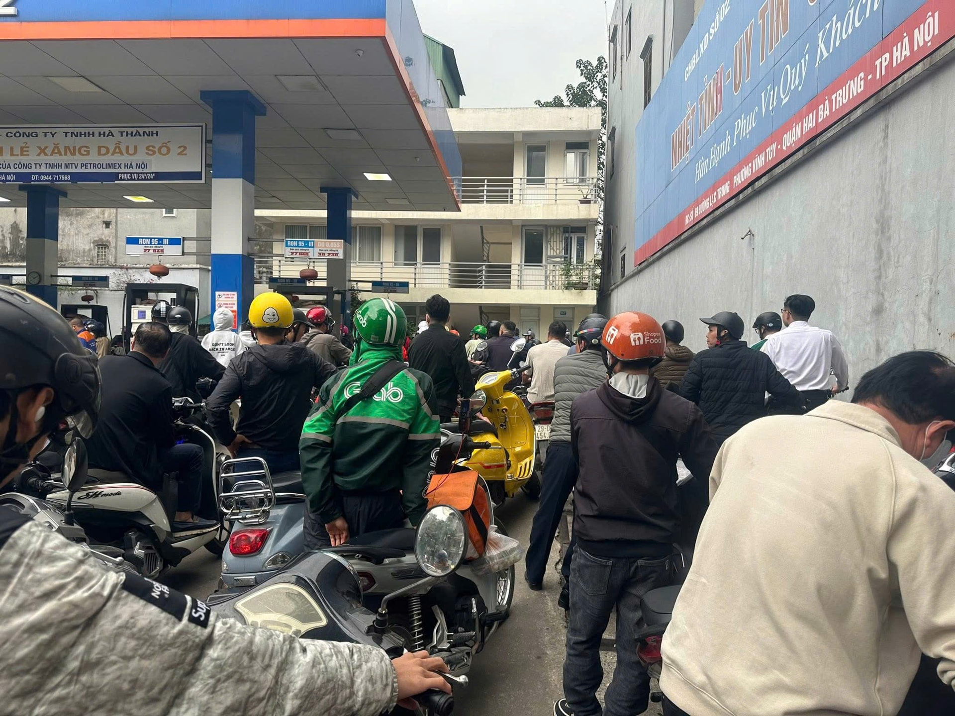 Người dân mua xăng tại điểm bán xăng dầu trên phố Lạc Trung. Ảnh: Vân Anh
