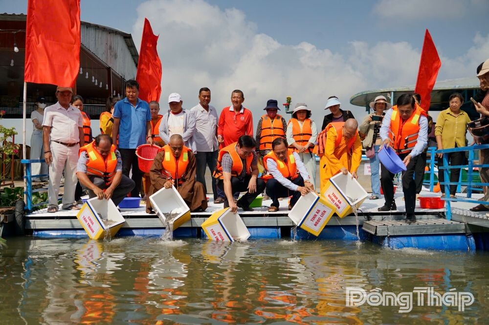 Chính quyền và người dân phường An Bình thả cá trở lại sông.