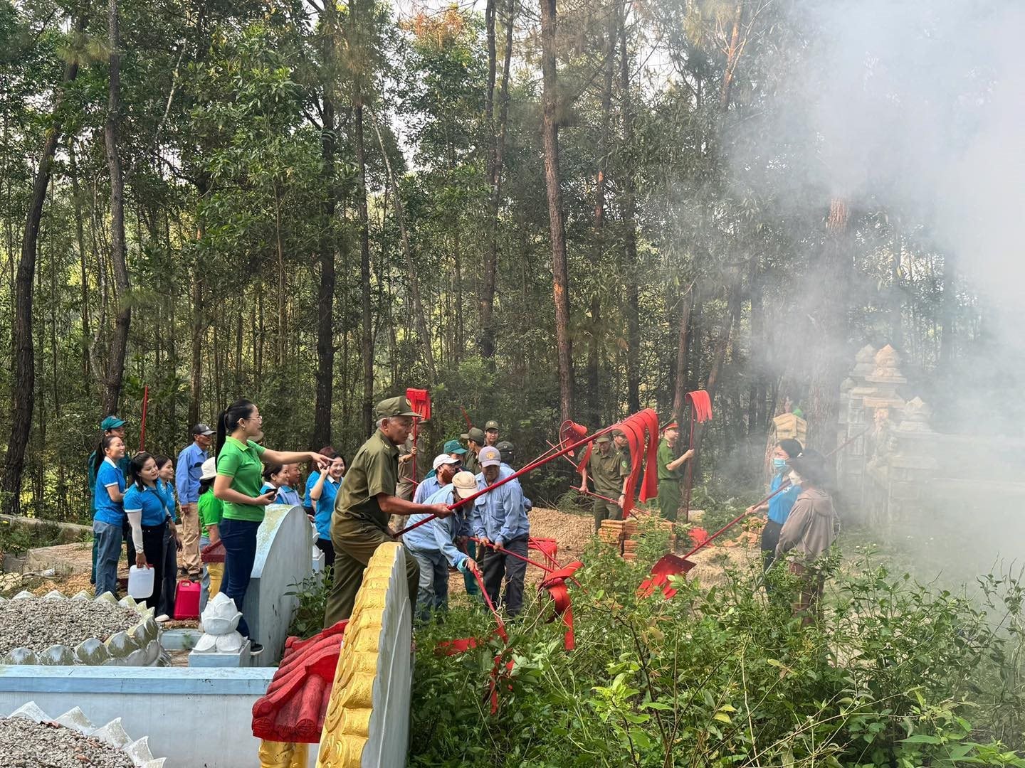 Điểm nhấn của chương trình là phần diễn tập xử lý tình huống cháy rừng giả định ngay sau lễ phát động. Tình huống được đặt ra là một vụ cháy phát sinh do người dân thắp hương viếng mộ bất cẩn, khiến lửa bén vào thực bì và cháy lan vào khu vực rừng thông.