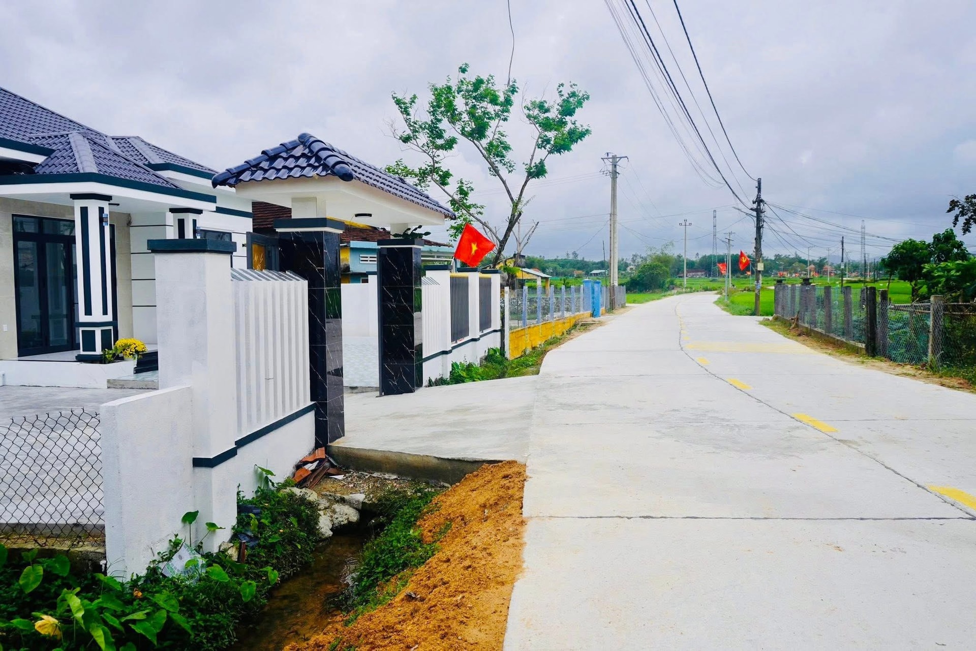 Người dân thôn Xuân Định xây nhà, chỉnh trang hàng rào sau khi tuyến đường ĐX1 được mở rộng. Ảnh: V.D
