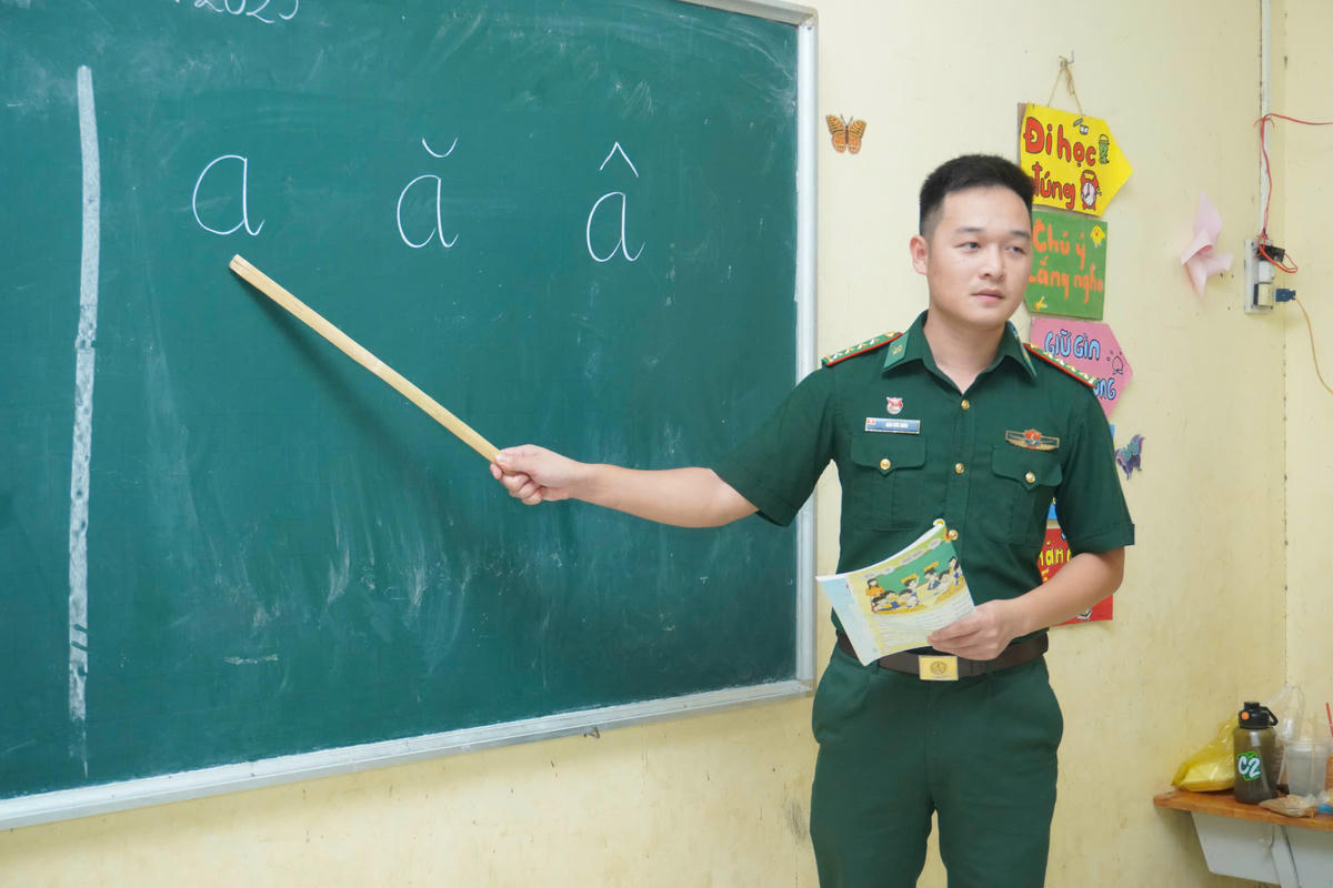 Dù vất vả, nhưng Đại úy Đậu Đức Hoài - Đội trưởng Vận động quần chúng chia sẻ, nhìn thấy ánh mắt sáng lên khi các em biết đọc, biết viết, các anh lại có thêm động lực.