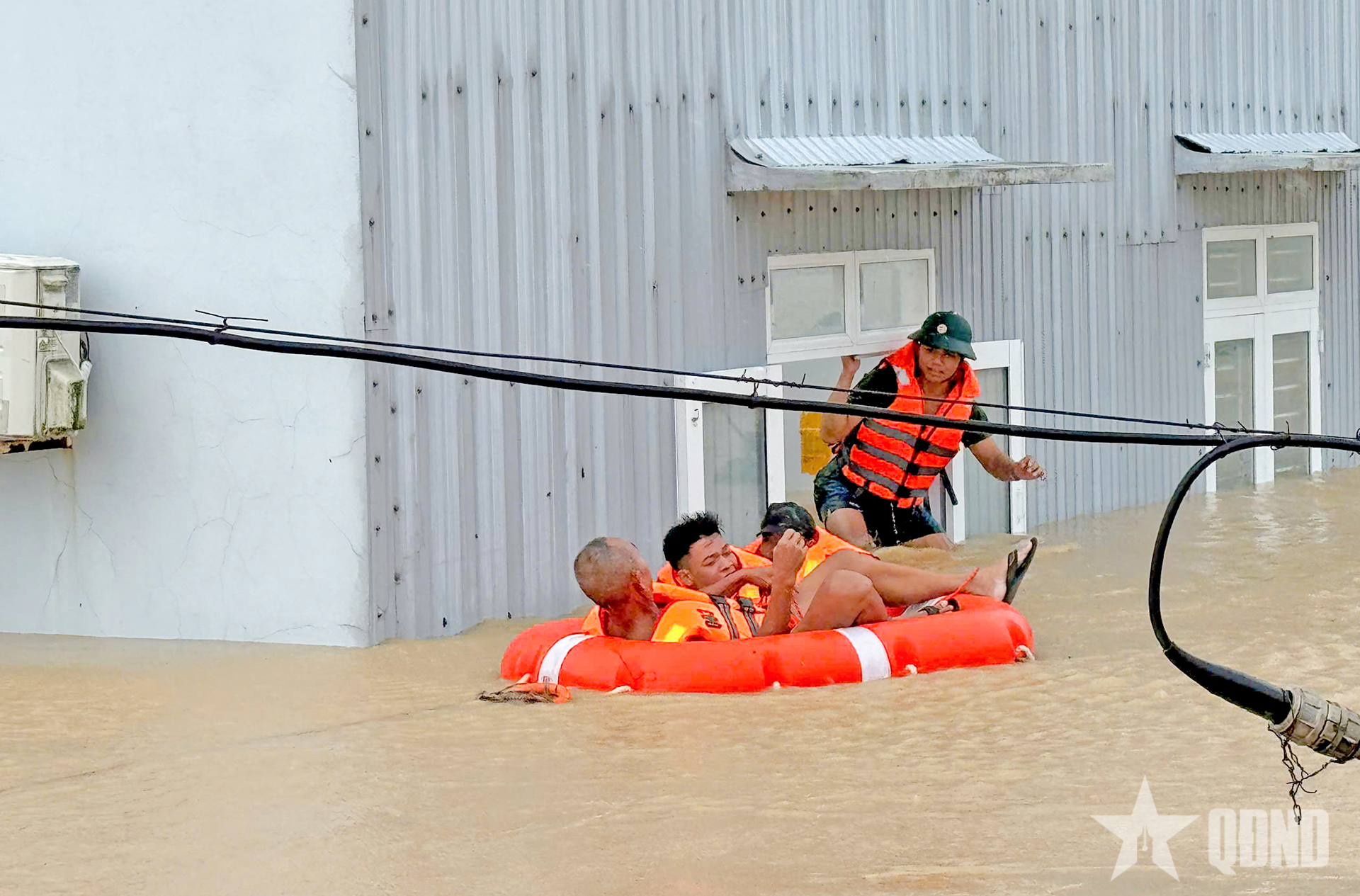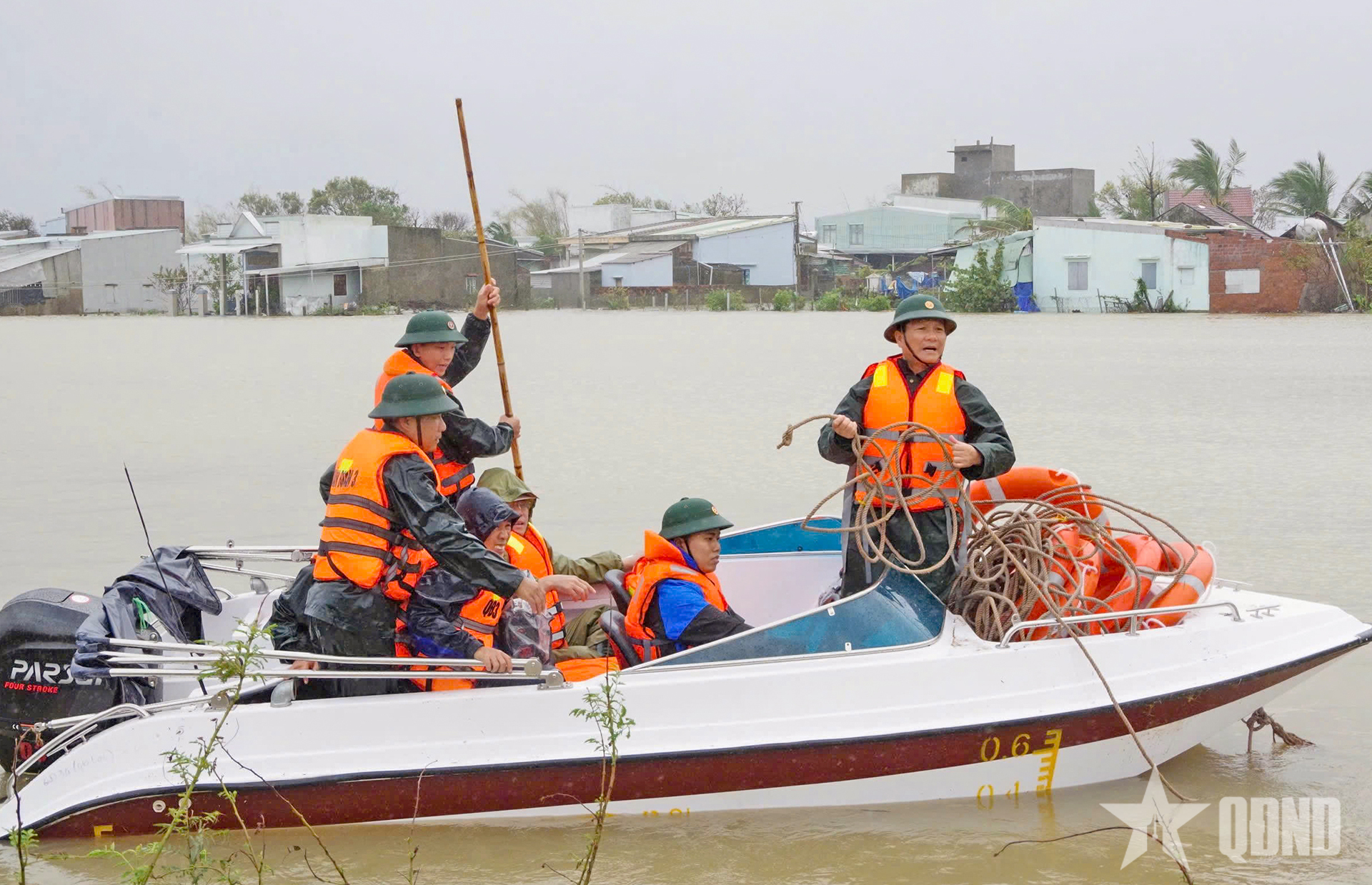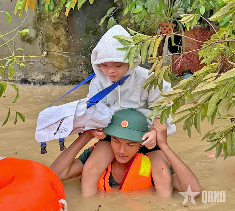 Cán bộ, chiến sĩ, học viên Trường Quân sự Quân đoàn 34 cứu dân ở thôn Diêu Trì (xã Tuy Phước, Gia Lai), ngày 19-11.