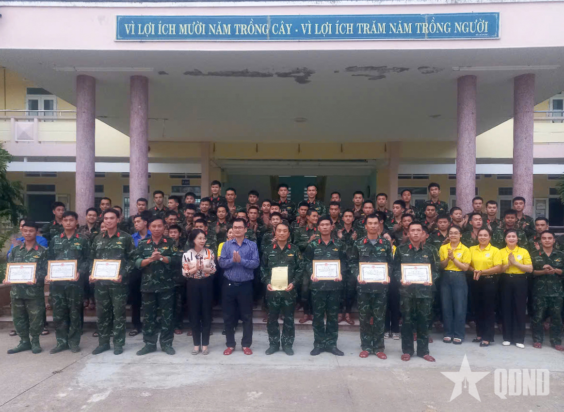 UBND xã Tuy Phước (Gia Lai) trao giấy khen tặng các tập thể, cá nhân của Trường Quân sự Quân đoàn 34 có thành tích xuất sắc trong giúp dân khắc phục hậu quả thiên tai.