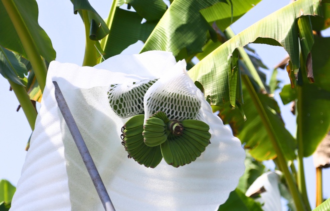 Các buồng chuối được chăm sóc kỹ đáp ứng nhu cầu phục vụ dịp Tết Nguyên đán. Ảnh: Hoàng Anh.