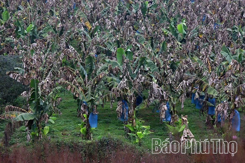 Những vườn chuối ở xã Cao Phong được trống đỡ và bọc buồng cẩn thận.