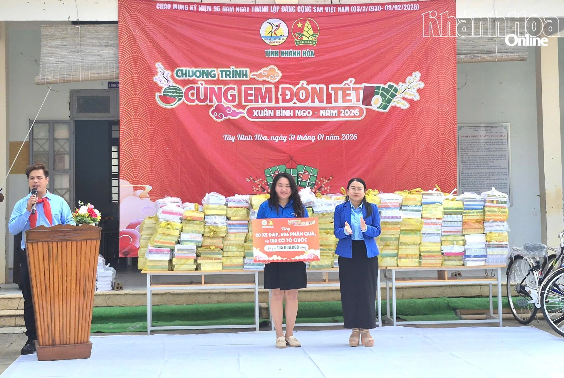 Tại chương trình, Ban tổ chức tặng 100 lá cờ Tổ quốc cho Đoàn xã Tây Ninh Hòa; trao 20 xe đạp cho các em học sinh có hoàn cảnh đặc biệt khó khăn, chưa có phương tiện đến trường và 606 phần quà gồm các dụng cụ học tập cho học sinh của trường.
