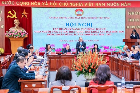 Ủy ban Trung ương MTTQ Việt Nam tổ chức Hội nghị tập huấn kỹ năng vận động bầu cử cho người ứng cử đại biểu Quốc hội Khóa XVI, đại biểu HĐND các cấp nhiệm kỳ 2026 - 2031. Ảnh: Hoài Nam