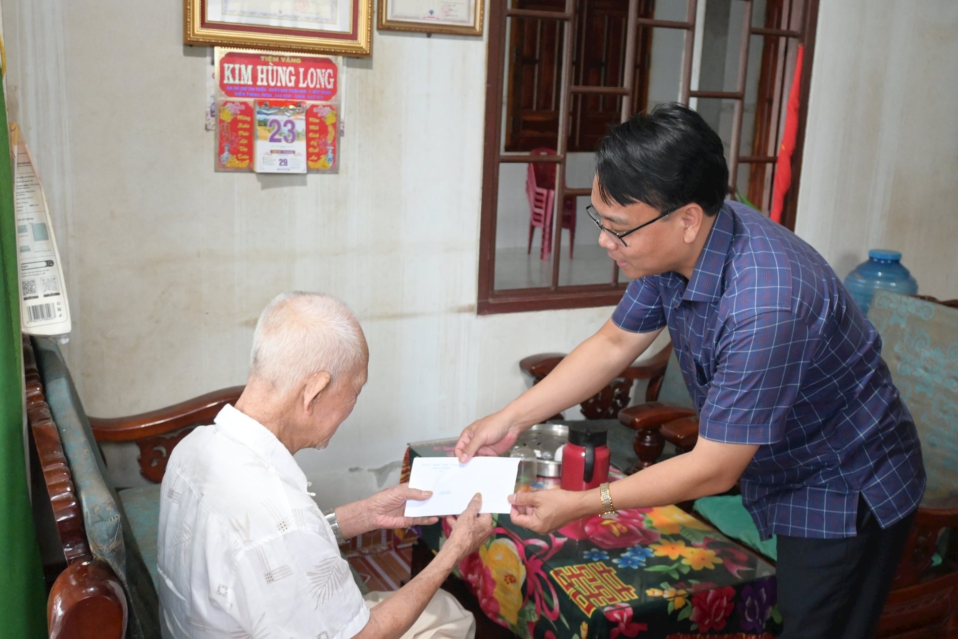 Phó Bí thư Thường trực Tỉnh ủy Lâm Đồng Đặng Hồng Sỹ thăm, tặng quà cho ông Trương Thiện Lý, thương binh 61% tại xã Hàm Kiệm, Tân Thành. Ảnh tư liệu