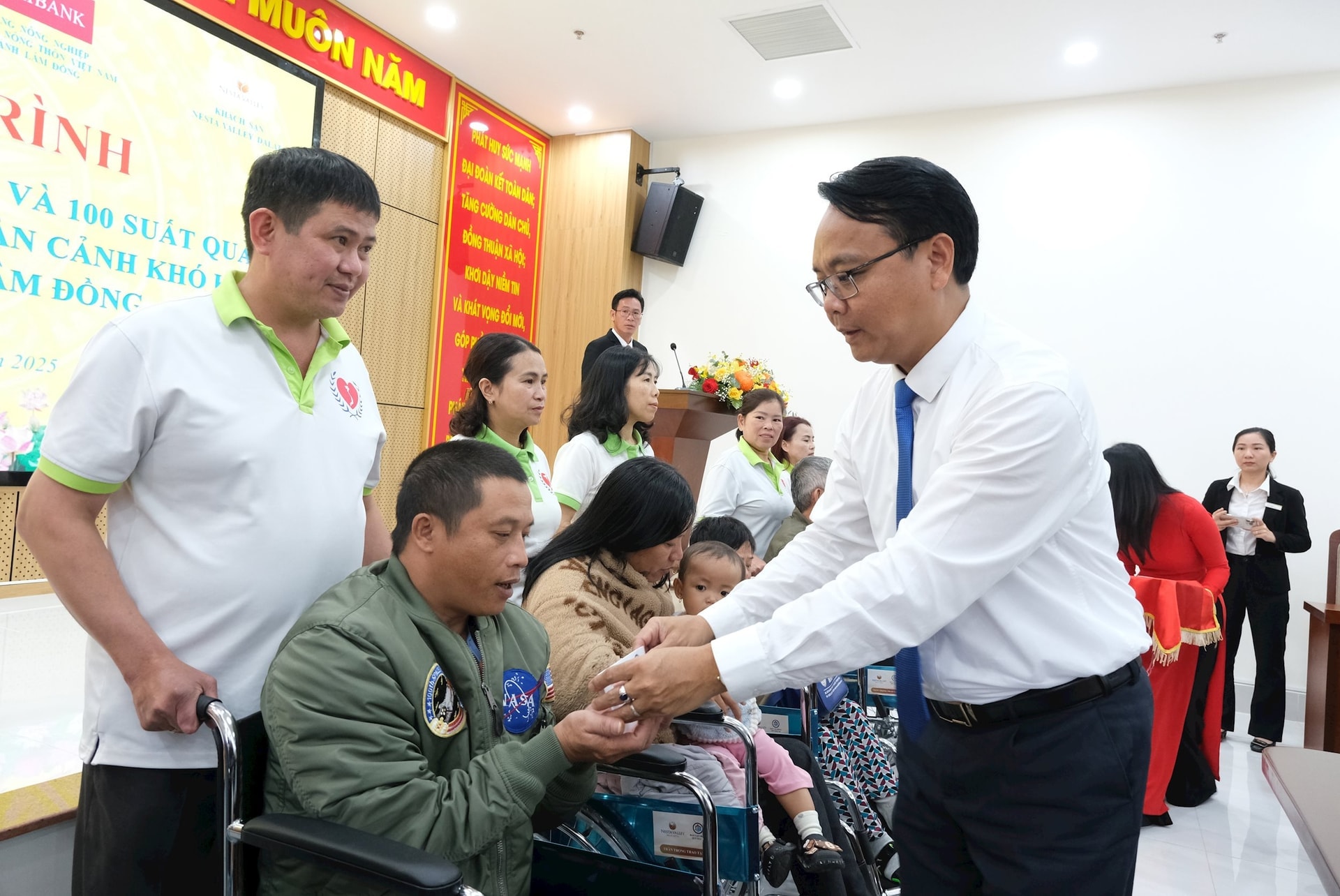 Phó Bí thư Thường trực Tỉnh ủy Lâm Đồng Đặng Hồng Sỹ tặng quà cho người khuyết tật. Ảnh tư liệu