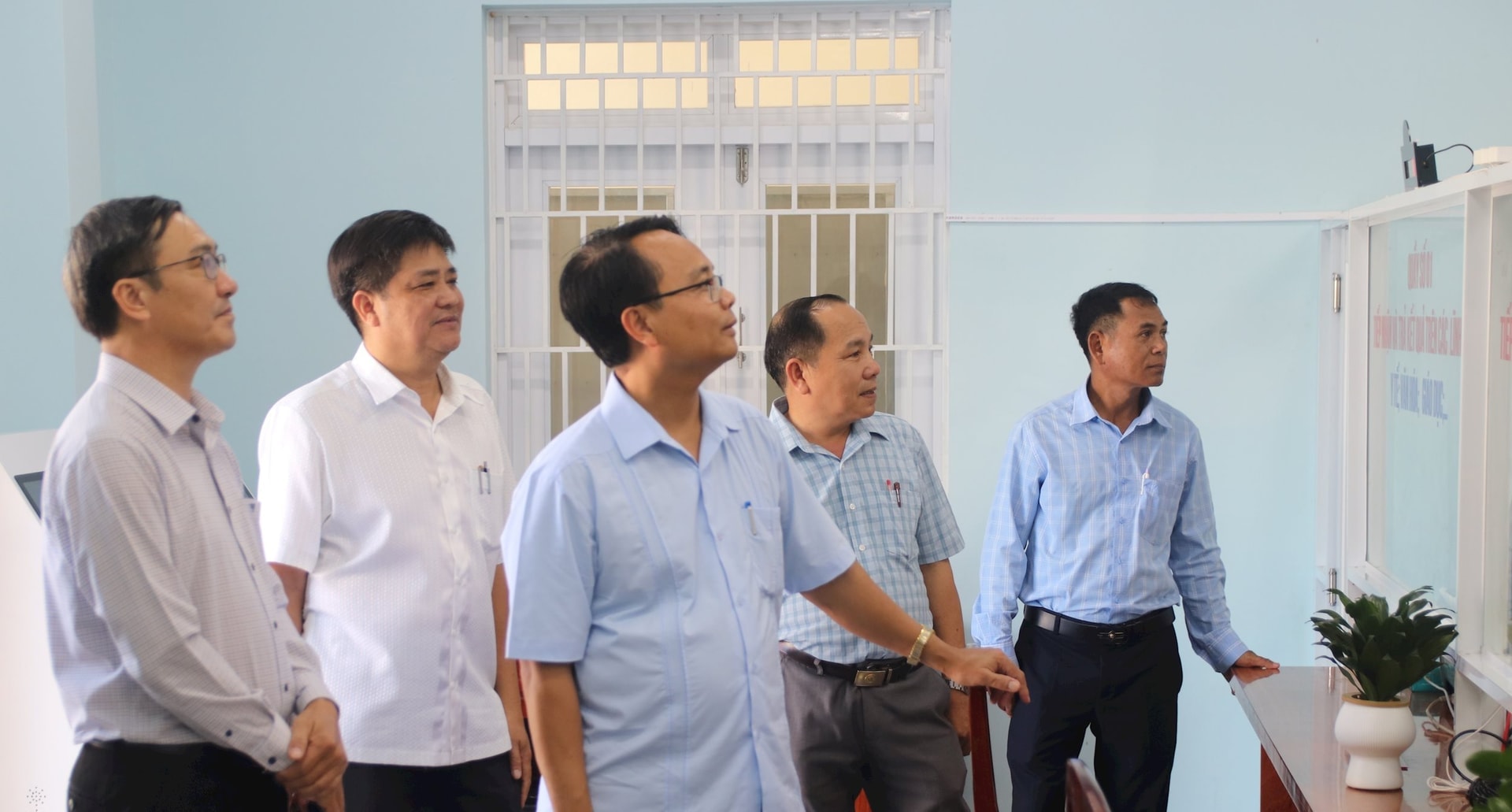 Phó Bí thư Thường trực Tỉnh ủy Lâm Đồng Đặng Hồng Sỹ và đoàn công tác kiểm tra tại Trung tâm Phục vụ hành chính công xã Đông Giang. Ảnh tư liệu