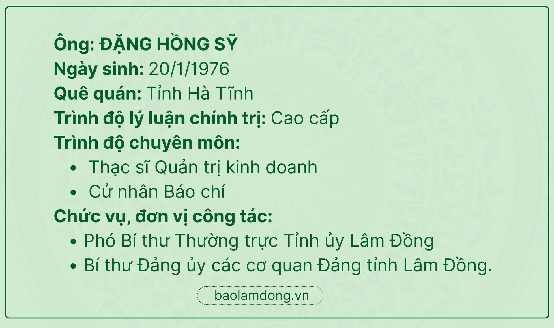 Được sự giới thiệu của Ủy ban MTTQ Việt Nam tỉnh Lâm Đồng, tôi vinh dự và phấn khởi được ứng cử đại biểu HĐND tỉnh Lâm Đồng, nhiệm kỳ 2026-2031, tại đơn vị bầu cử số 17.