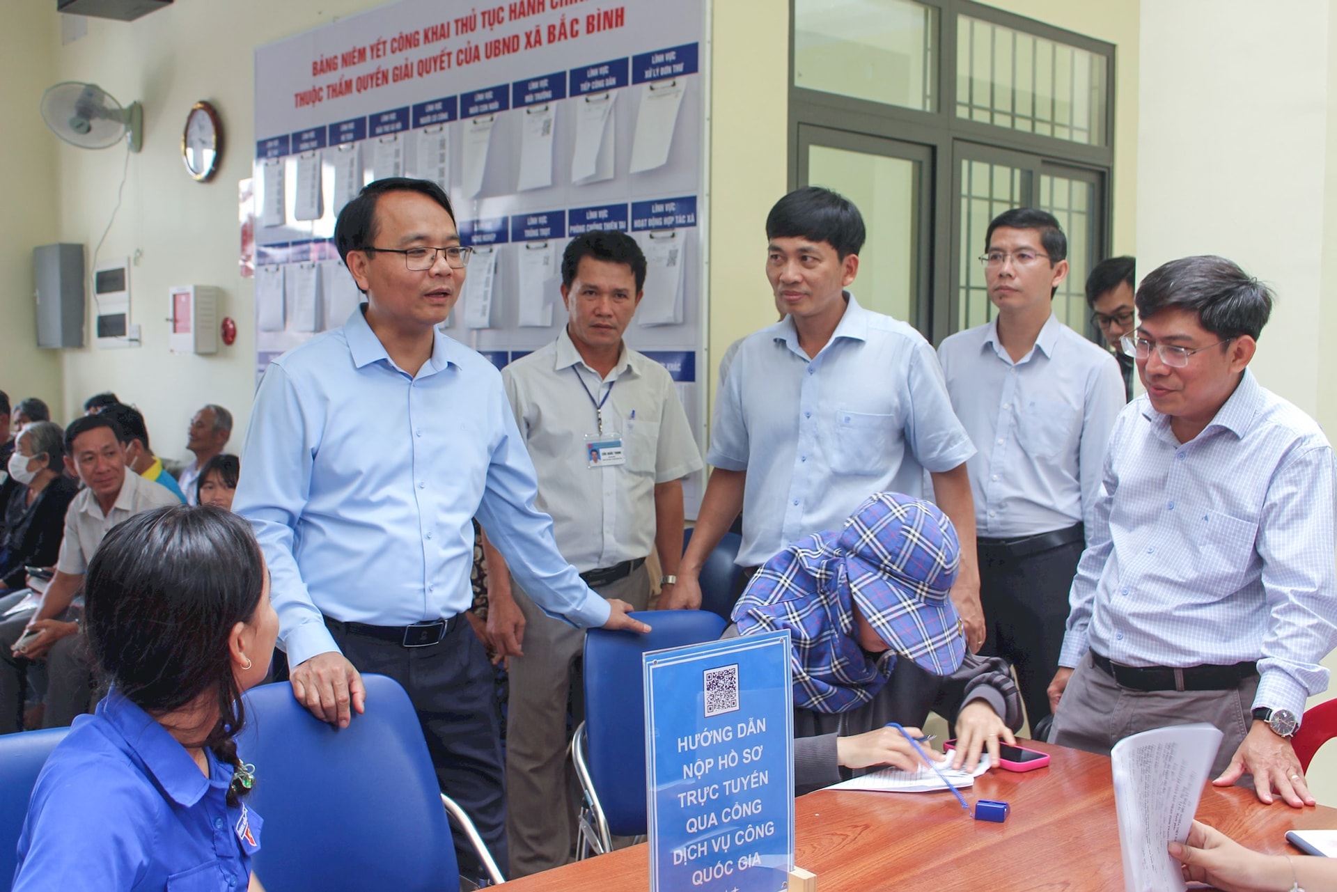 Phó Bí thư Thường trực Tỉnh ủy Lâm Đồng Đặng Hồng Sỹ kiểm tra hoạt động của Trung tâm Phục vụ hành chính công xã Bắc Bình. Ảnh tư liệu