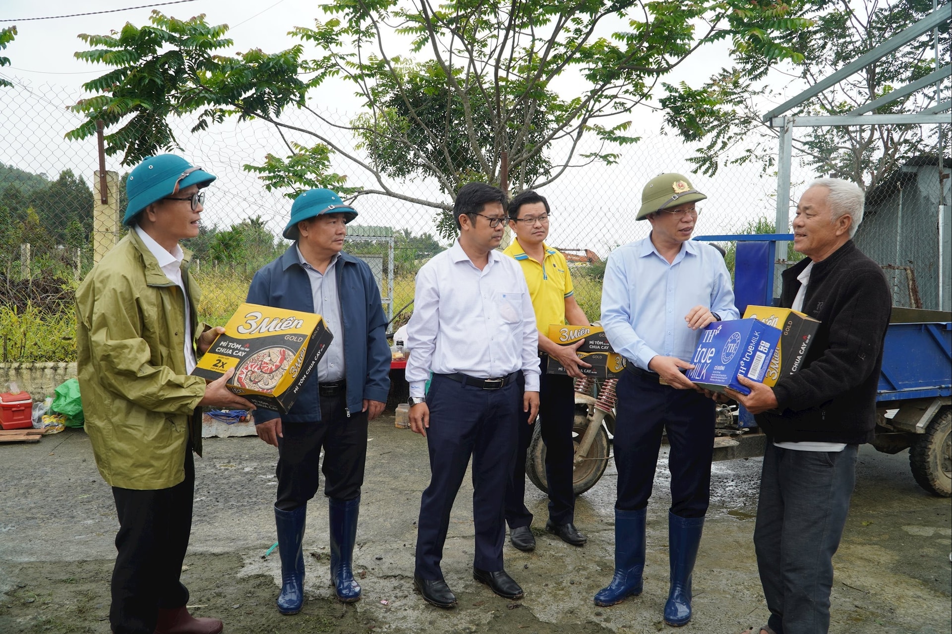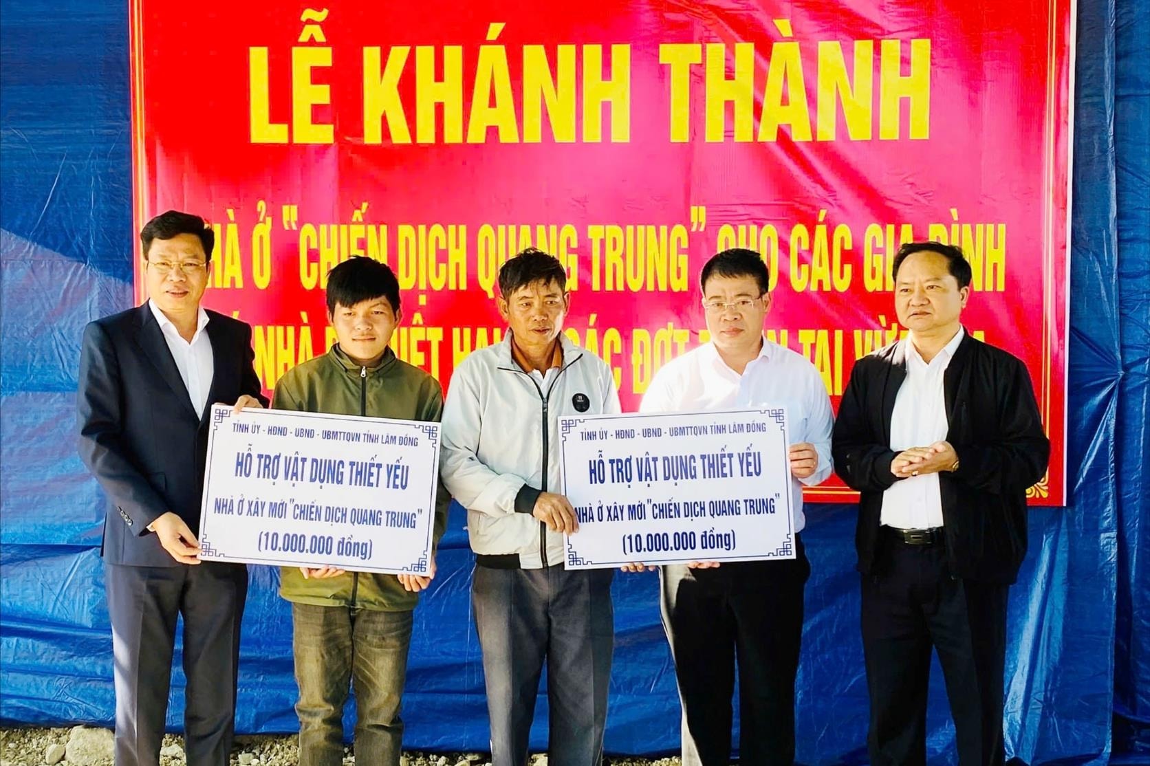Đồng chí Lưu Văn Trung, Phó Bí thư Tỉnh ủy, Chủ tịch HĐND tỉnh và đồng chí Nguyễn Ngọc Phúc, Phó Chủ tịch UBND tỉnh trao kinh phí để 2 hộ dân bị thiệt hại do mưa lũ mua sắm đồ dùng thiết yếu khi vào nhà mới. Ảnh tư liệu