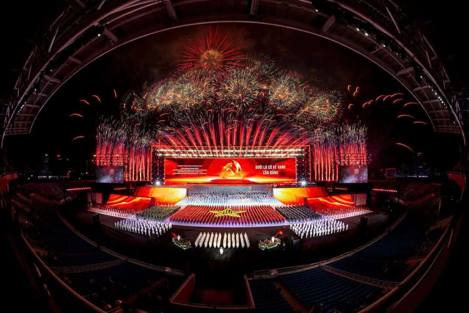 Chương trình nghệ thuật đặc biệt và pháo hoa chào mừng thành công Đại hội Đảng với chủ đề "Dưới lá cờ vẻ vang" diễn ra tại Sân vận động Mỹ Đình tối 23/1.