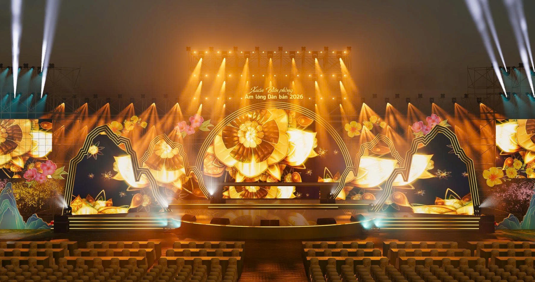 Phối cảnh sân khấu của chương trình “Xuân Biên phòng ấm lòng dân bản” năm 2026