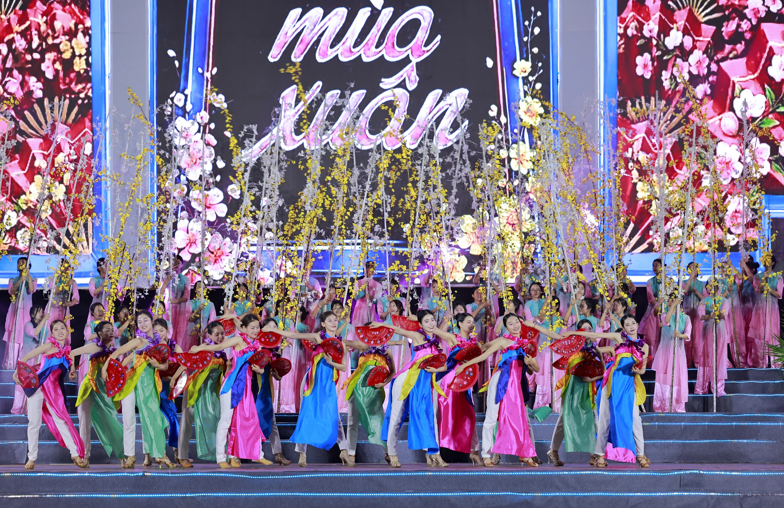 Chương trình được dàn dựng theo hình thức nghệ thuật tổng hợp ca múa nhạc, hoạt cảnh gồm 3 chương, kết nối theo mạch cảm xúc xuyên suốt từ cội nguồn dân tộc, sự hội tụ văn hóa đến khát vọng vươn lên của đất nước trong mùa Xuân mới. Tham gia biểu diễn có Nghệ sĩ Nhân dân Tự Long cùng các ca sĩ: Trọng Tấn, Dương Hoàng Yến, Thành Lê, Minh Hải, Tiến Hưng và nhiều nghệ sĩ, diễn viên đến từ Nhà hát Lạc Hồng, các đơn vị nghệ thuật, trường học trên địa bàn tỉnh.