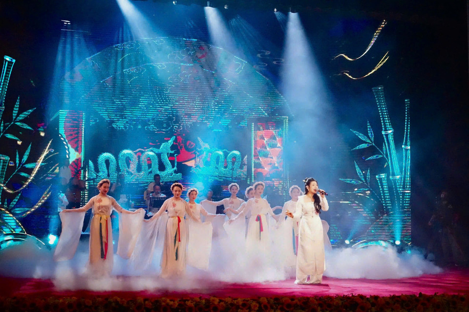 Các tiết mục nghệ thuật quảng bá văn hóa truyền thống Việt Nam theo cách hiện đại. (Ảnh: PV/Vietnam+)