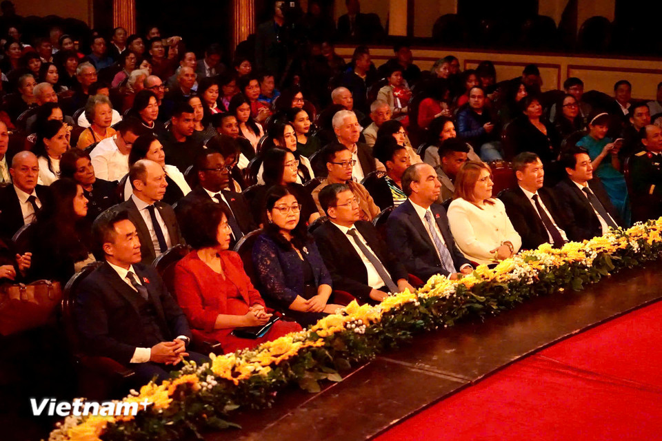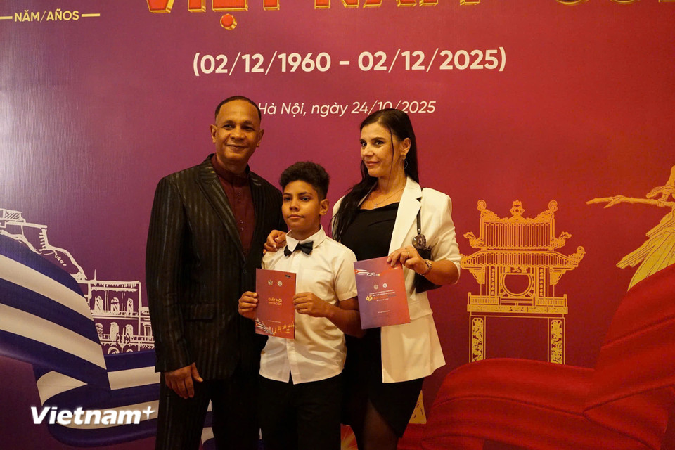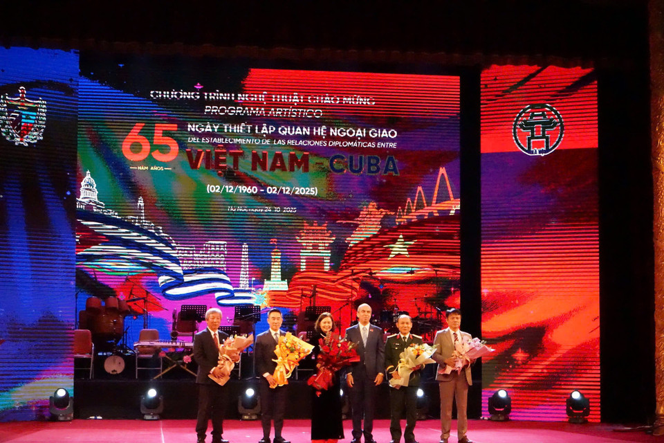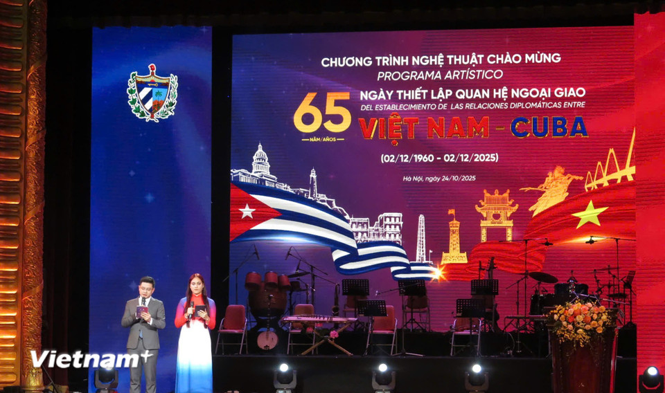 Chương trình nghệ thuật đặc biệt "Việt Nam-Cuba: Nghĩa tình son sắt" diễn ra tối 24/10 tại Hà Nội do Đại sứ quán Cuba tại Việt Nam phối hợp với Liên hiệp các tổ chức hữu nghị, Hội Chữ thập đỏ, Sở Văn hóa và Thể thao Thành phố Hà Nội tổ chức là hoạt động chào mừng 65 năm Ngày thiết lập quan hệ ngoại giao Việt Nam-Cuba (2/12/1960-2/12/2025). (Ảnh: PV/Vietnam+)
