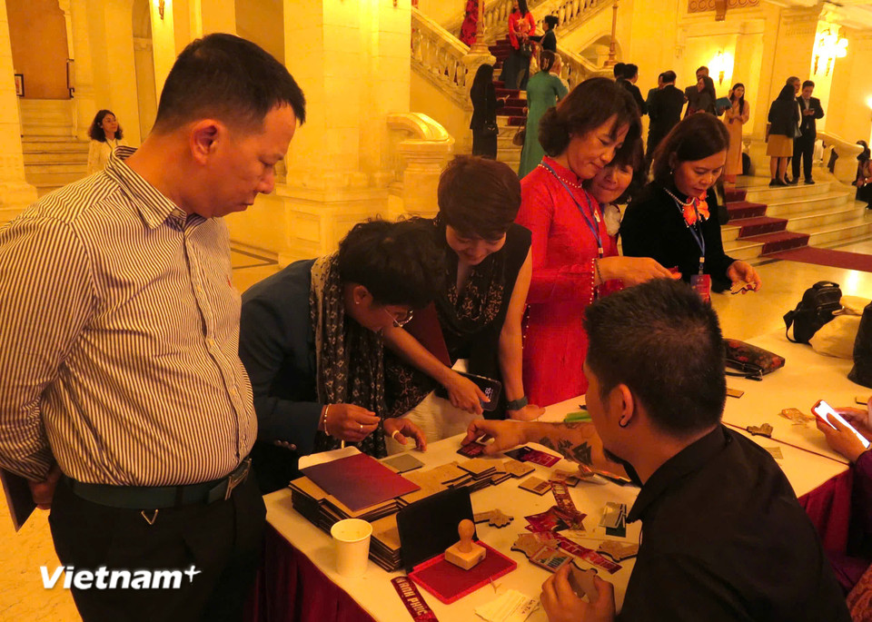 Khu vực trải nghiệm in tranh các địa danh nổi tiếng của Việt Nam. (Ảnh: PV/Vietnam+)