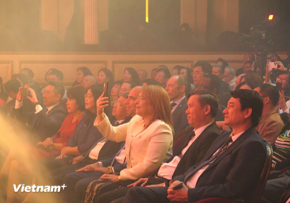 Tại chương trình, các đại biểu đã ôn lại những mốc son chói lọi trong suốt chiều dài xây dựng mối quan hệ hữu nghị đặc biệt của hai nước, nhất là trong những tháng ngày chia lửa chiến đấu vì mục tiêu chung giải phóng dân tộc và chủ nghĩa xã hội. (Ảnh: PV/Vietnam+)