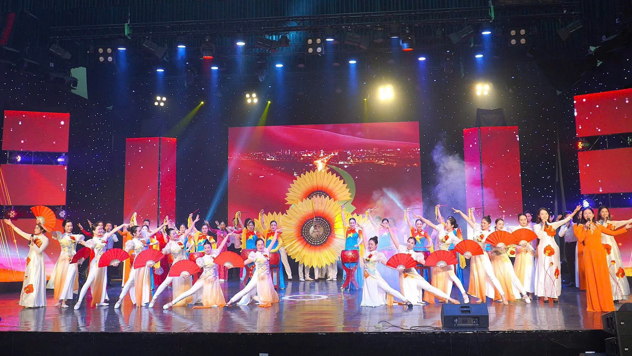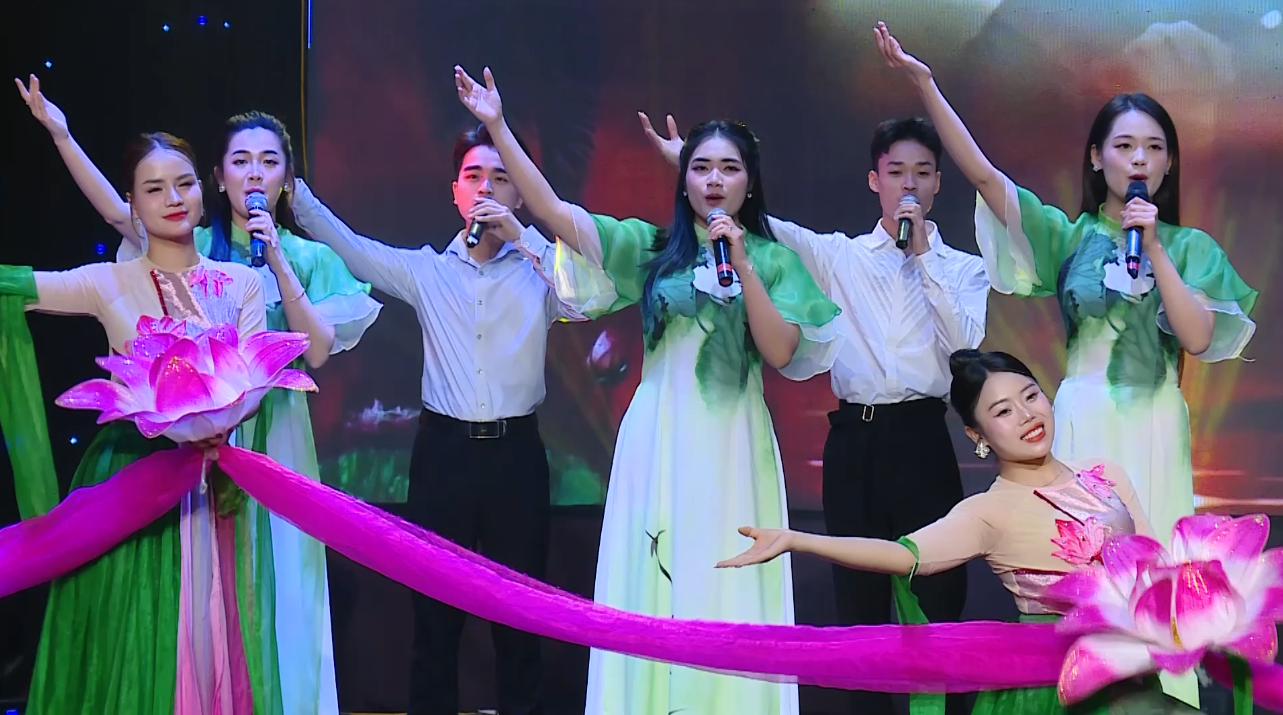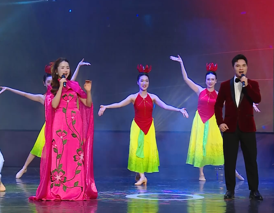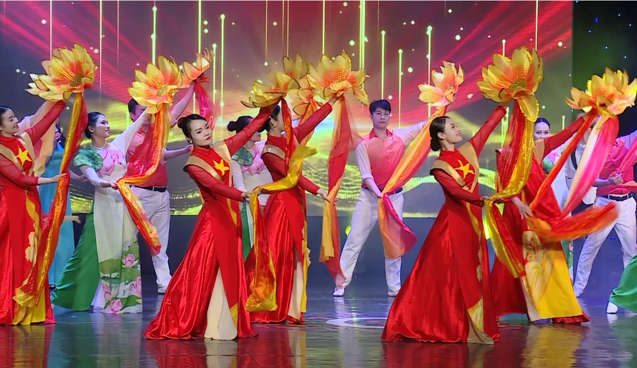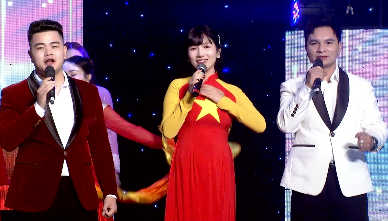 Những hình ảnh trong tiết mục: Liên khúc “Niềm tin dâng Đảng - Đất nước trọn niềm vui - Bài ca non sông”