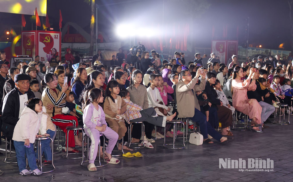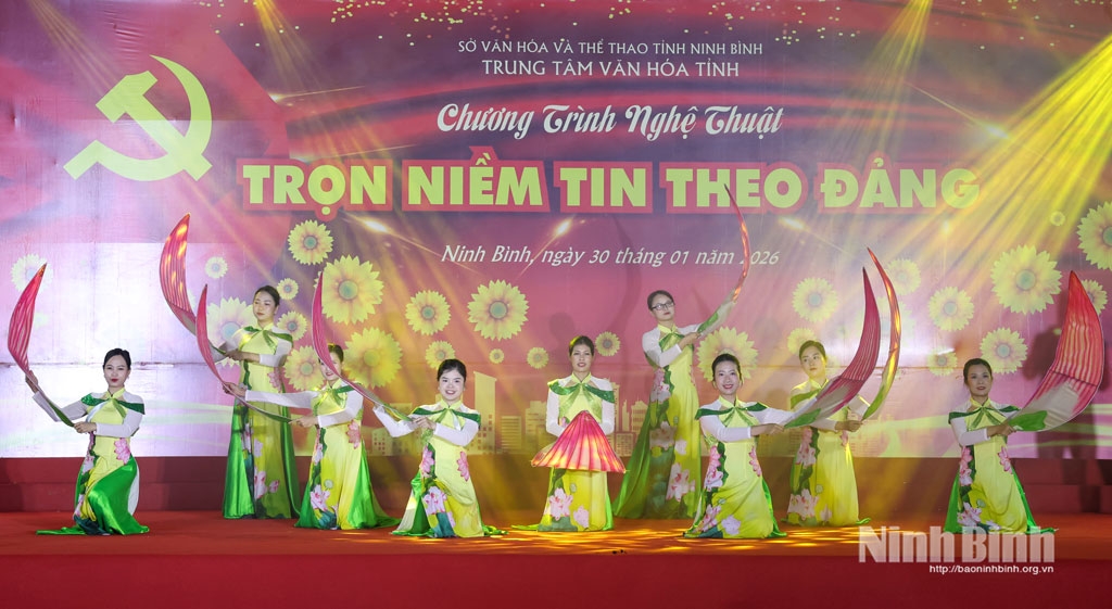 Chương trình nghệ thuật “Trọn niềm tin theo Đảng” do các diễn viên Trung tâm Văn hóa tỉnh phối hợp với Trung tâm Thanh thiếu nhi tỉnh biểu diễn gồm các tiết mục văn nghệ đặc sắc: Chào mừng Đảng Cộng sản Việt Nam, Đảng là cuộc sống của tôi, Người là niềm tin tất thắng, Lá cờ Đảng, Mỗi bước đi thêm yêu Tổ quốc, Tuổi xuân dâng Đảng, Đất nước trọn niềm vui...với nội dung ca ngợi Đảng quang vinh, Bác Hồ vĩ đại, ca ngợi truyền thống lịch sử văn hóa, vẻ đẹp của quê hương, đất nước, những thành tựu đạt được trong sự nghiệp đổi mới trên quê hương Ninh Bình...