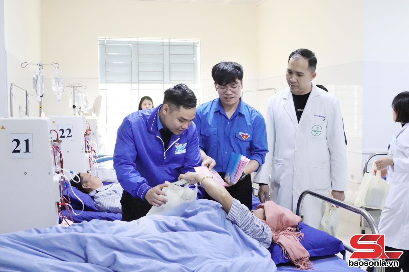 Đoàn thanh niên Sở Nội vụ tặng quà cho bệnh nhân điều trị tại Khoa Thận nhân tạo.