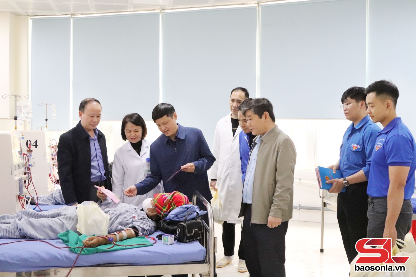 Lãnh đạo các đơn vị thăm hỏi, tặng quà cho bệnh nhân điều trị tại Khoa Thận nhân tạo.