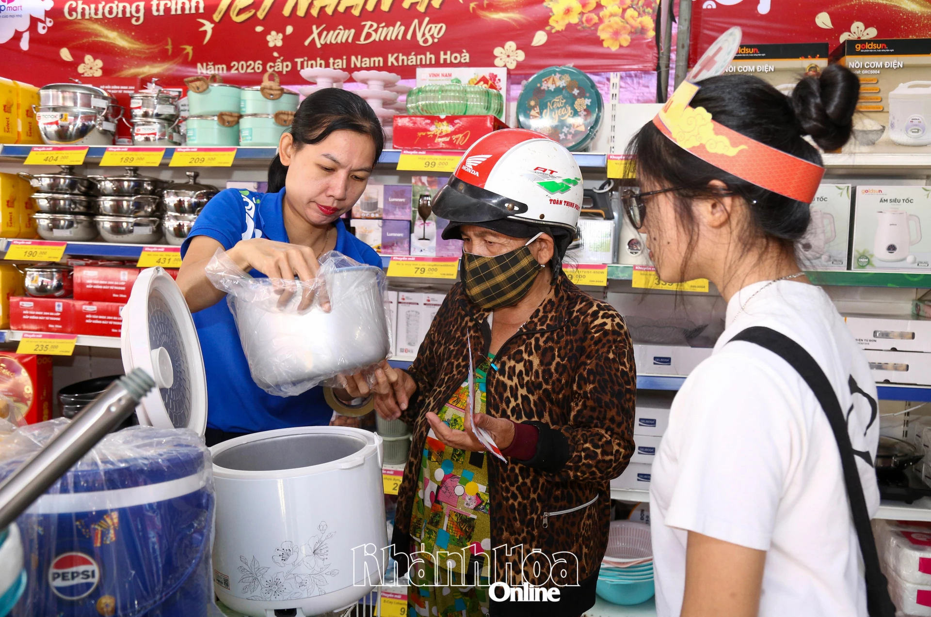 Người dân sử dụng phiếu mua quà để chọn mua sản phẩm tại chương trình.