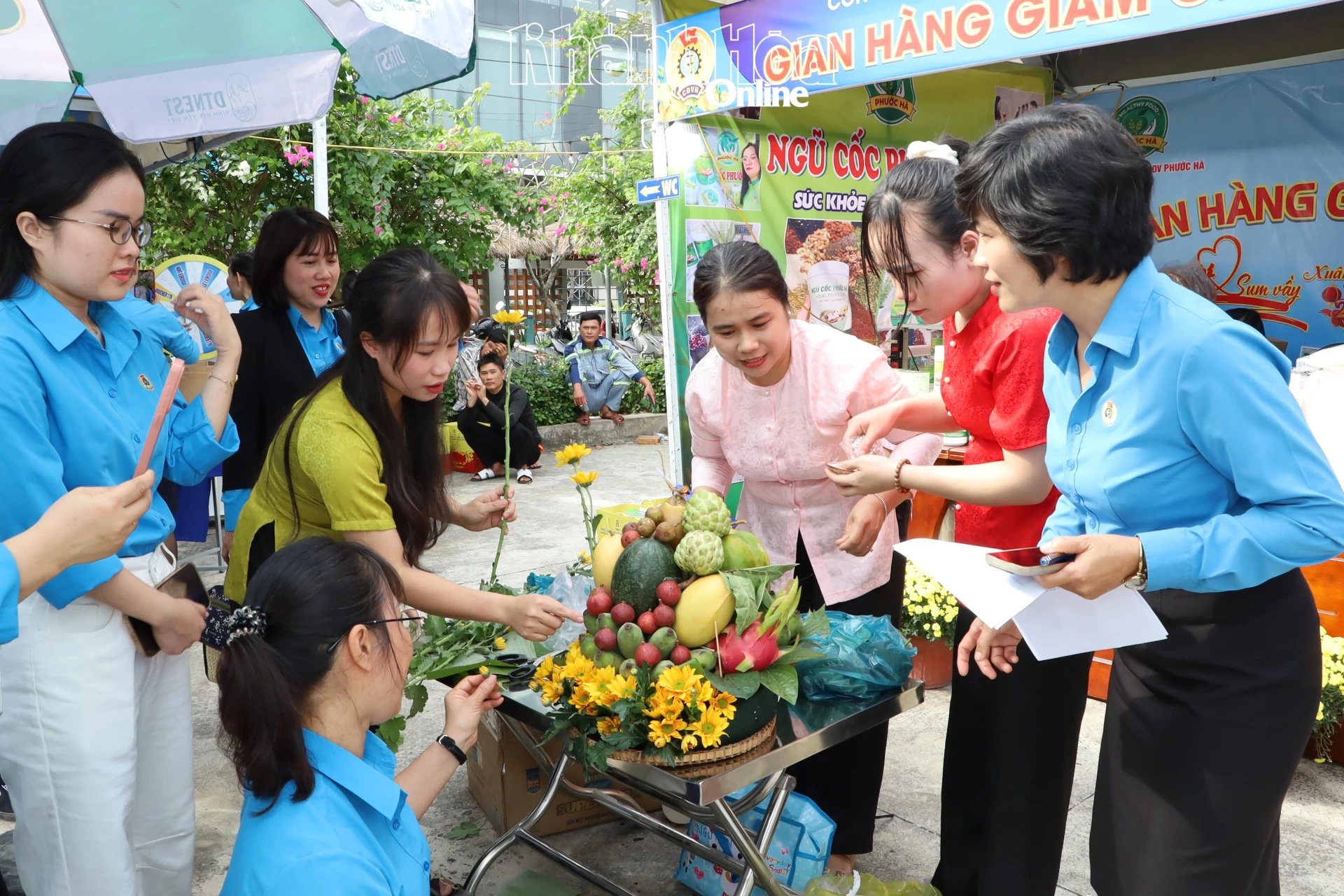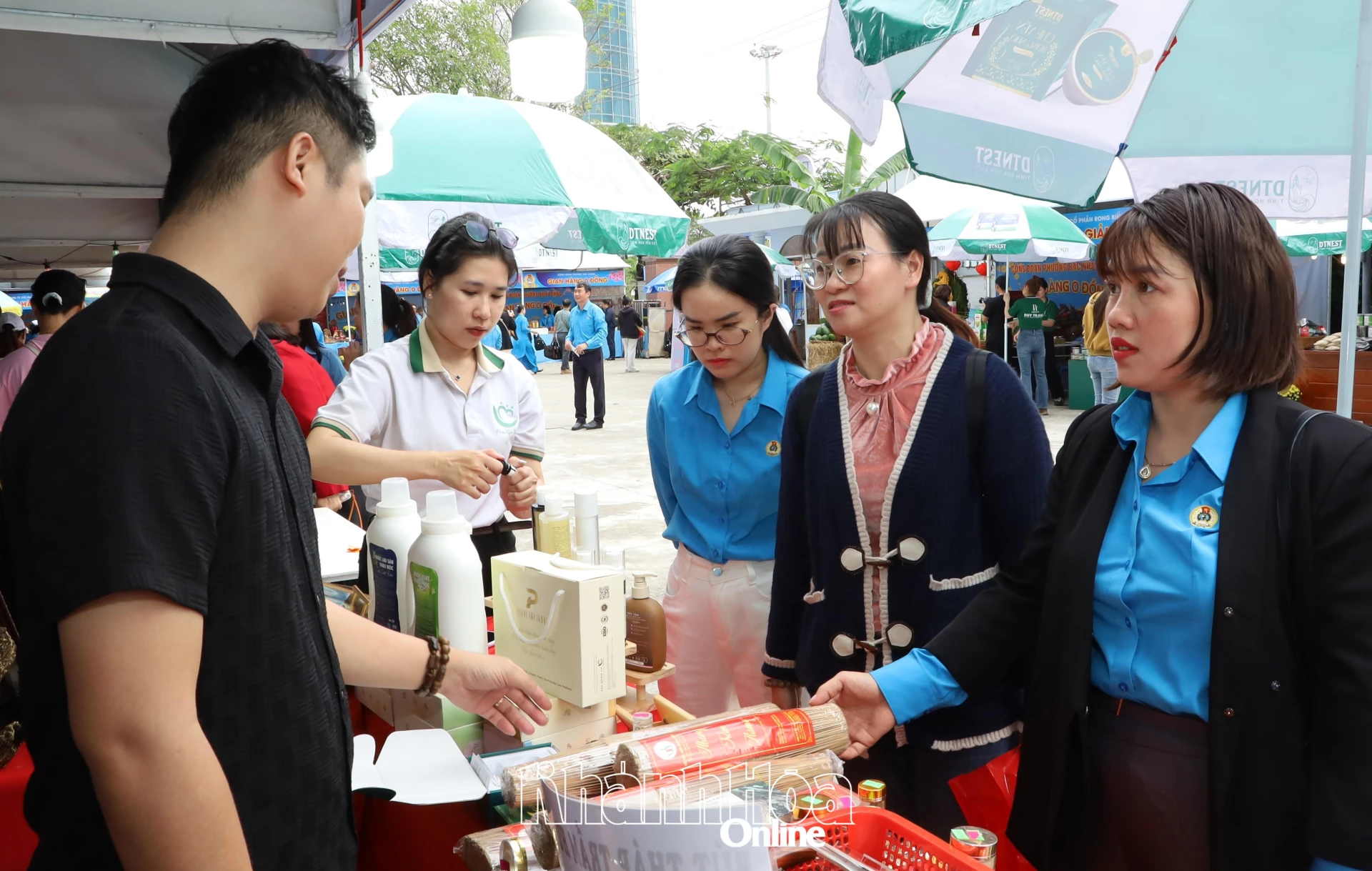Đoàn viên, người lao động mua các sản phẩm tại gian hàng giảm giá.