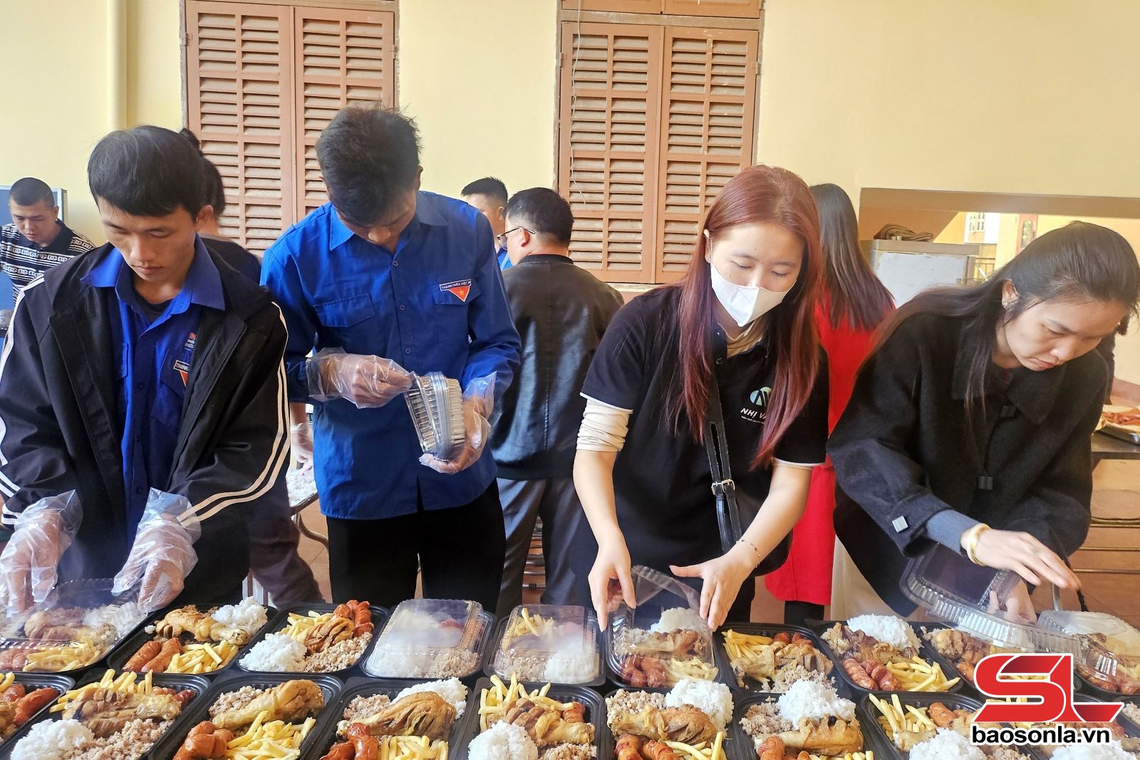Đoàn viên, thanh niên chuẩn bị các suất ăn cho học sinh.