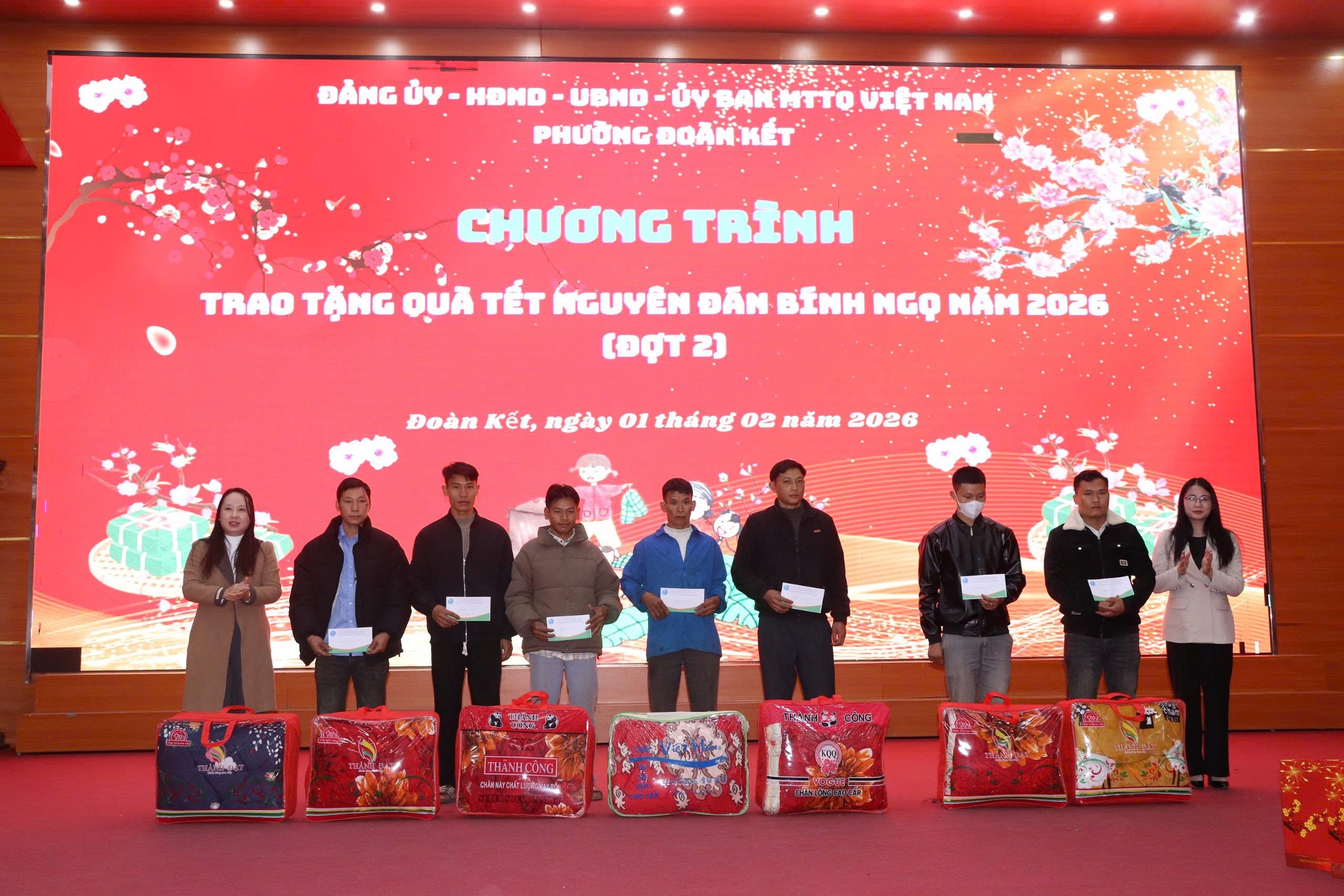 Phát biểu tại buổi trao quà, đại diện lãnh đạo Ủy ban MTTQ Việt Nam phường Đoàn Kết đã bày tỏ sự trân trọng, cảm ơn các cơ quan, đơn vị, doanh nghiệp và nhà hảo tâm đã đồng hành cùng địa phương trong công tác an sinh xã hội; đồng thời mong muốn các hộ gia đình tiếp tục nỗ lực vươn lên trong cuộc sống, tích cực tham gia các phong trào thi đua tại khu dân cư.