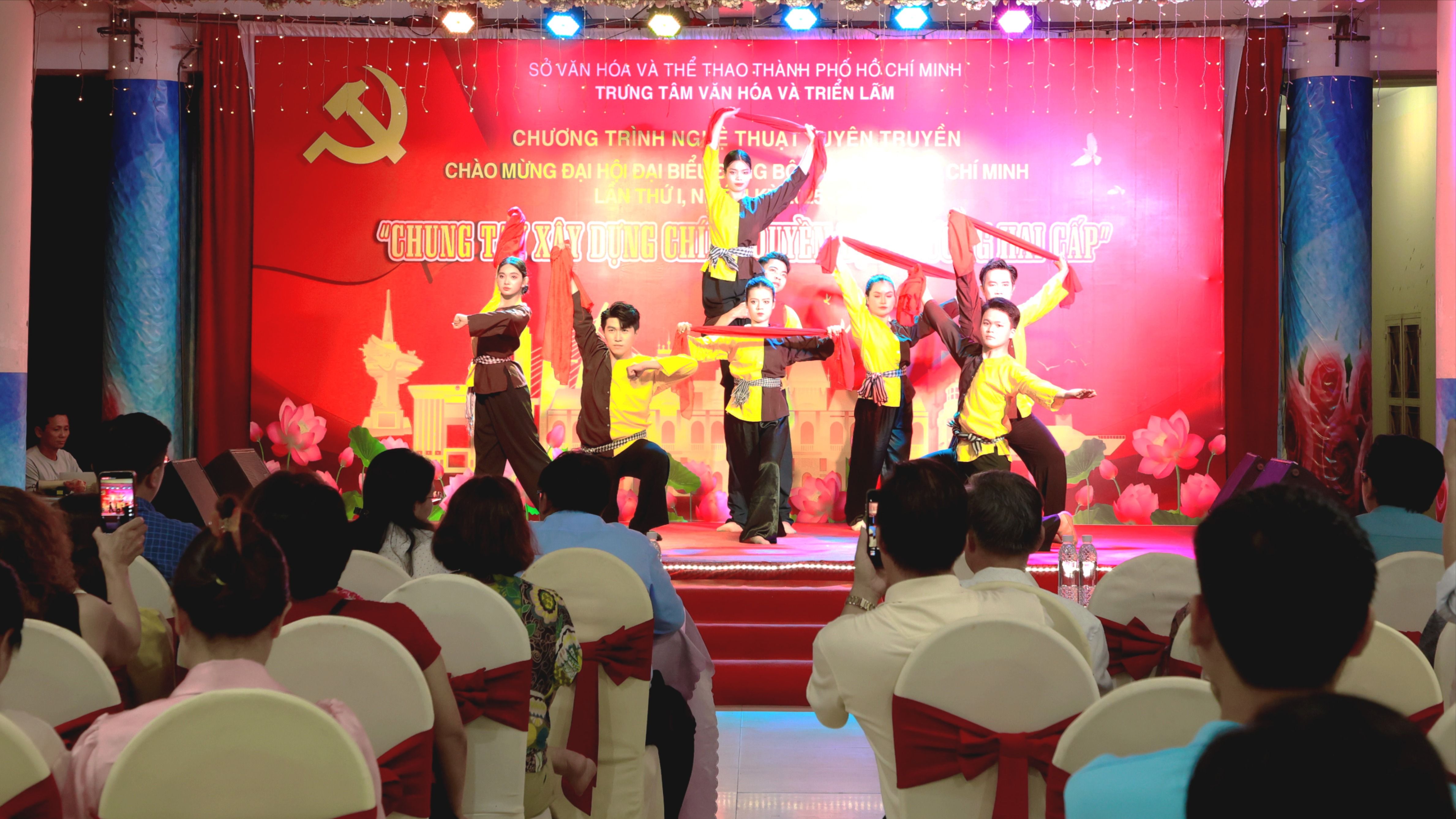 Chương trình văn nghệ lưu động chủ đề Chung tay xây dựng chính quyền địa phương hai cấp sẽ biểu diễn 16 suất tại các cơ sở: Trung tâm Cung ứng Dịch vụ Văn hóa và Thể thao phường Tân Thuận, Trung tâm Cung ứng Dịch vụ Văn hóa và Thể thao phường Bình Thới, Trung tâm Cung ứng Dịch vụ Văn hóa và Thể thao xã Tân An Hội, Trung tâm Cung ứng Dịch vụ Văn hóa – Thể thao phường Chánh Hưng, Trung tâm cung ứng dịch vụ Văn hóa - Thể thao phường An Hội Đông, Trung tâm Cung ứng Dịch vụ Văn hóa và Thể thao xã Tân Nhựt, Công viên Lê Thị Riêng, Nhà truyền thống Bình Thạnh, Trường Trung cấp nghề Củ Chi, Quảng trường Khánh Hội, Đường sách Thủ Đức, Trường Đại học Sài Gòn, Trung đoàn Gia Định, Bộ Chỉ huy Bộ đội Biên phòng TPHCM…