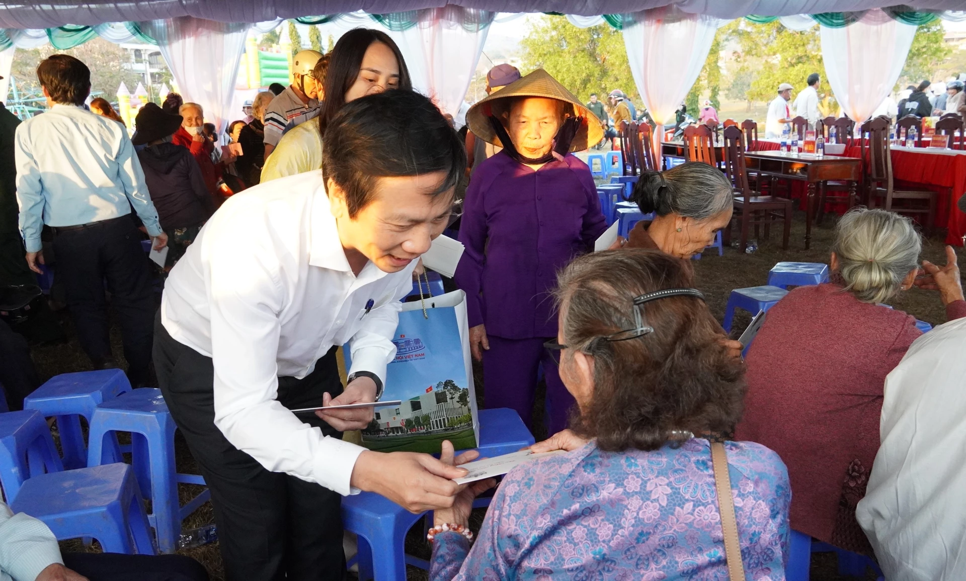 Đồng chí Phó Chủ tịch Thường trực UBND tỉnh Hoàng Nam trao quà Tết cho các gia đình có hoàn cảnh khó khăn - Ảnh: QV