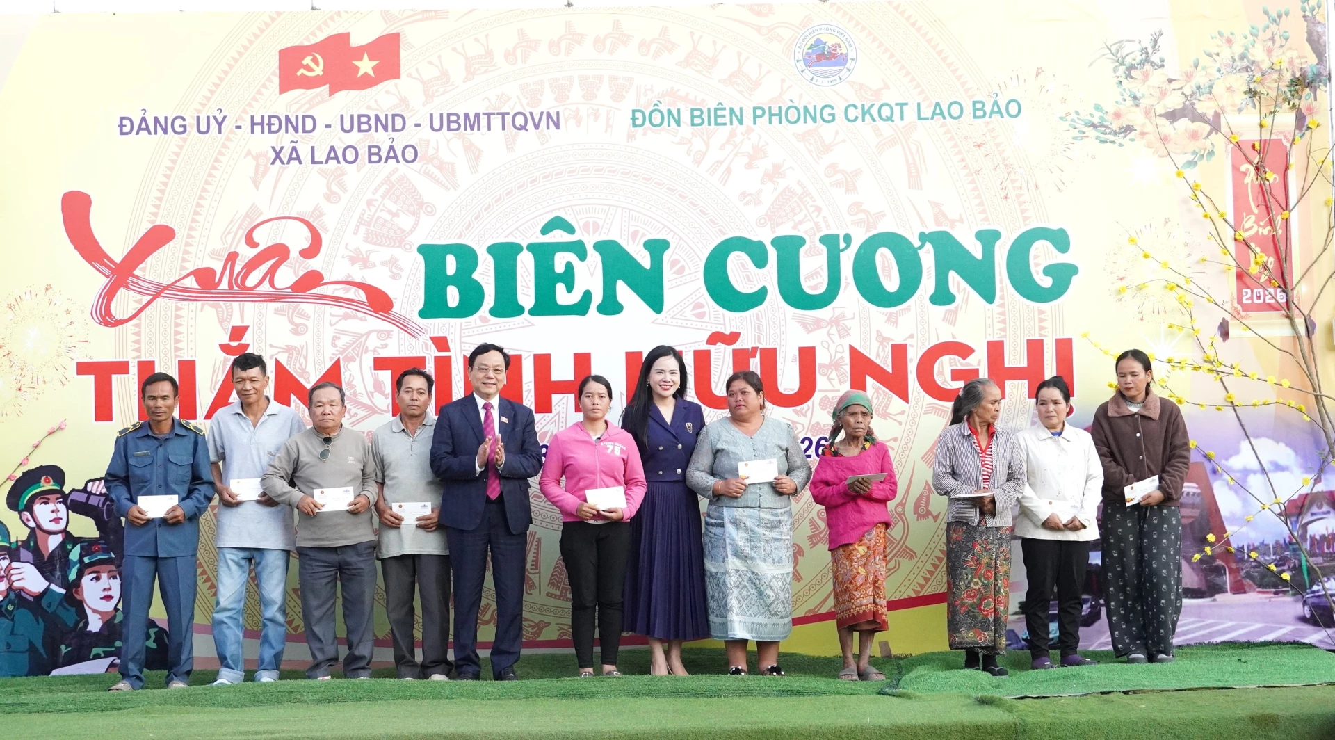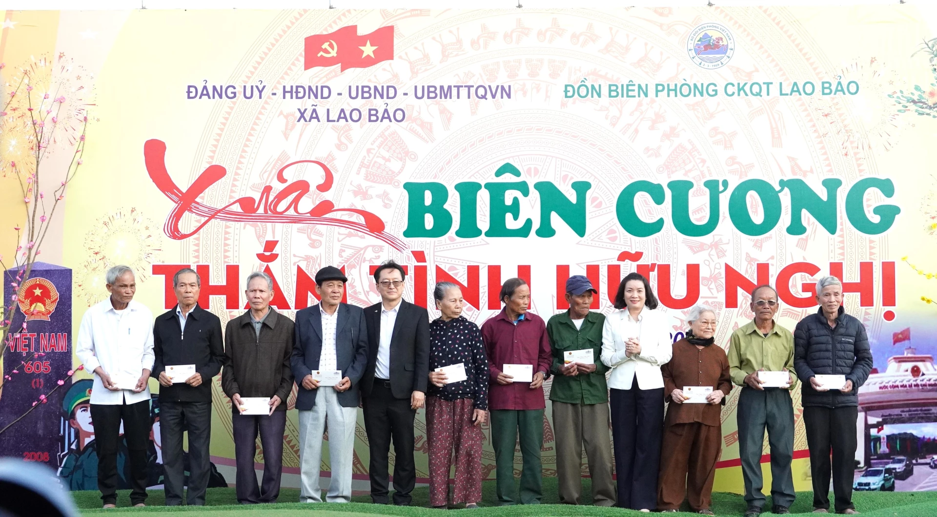 Dịp này, các đồng chí lãnh đạo tỉnh, Đoàn đại biểu Quốc hội tỉnh, các nhà hảo tâm đã trao hàng trăm suất quà Tết cho các hộ gia đình có hoàn cảnh đặc biệt khó khăn hai bên biên giới Việt Nam-Lào; trao quà cho các em học sinh có hoàn cảnh khó khăn vượt khó học giỏi; tặng 4.000 áo ấm cho các em học sinh hai bên biên giới; 2 căn nhà đại đoàn kết cho các hộ dân có hoàn cảnh khó khăn; trao 300 suất quà tết cho các hộ dân có hoàn cảnh khó khăn trên địa bàn xã Lao Bảo…