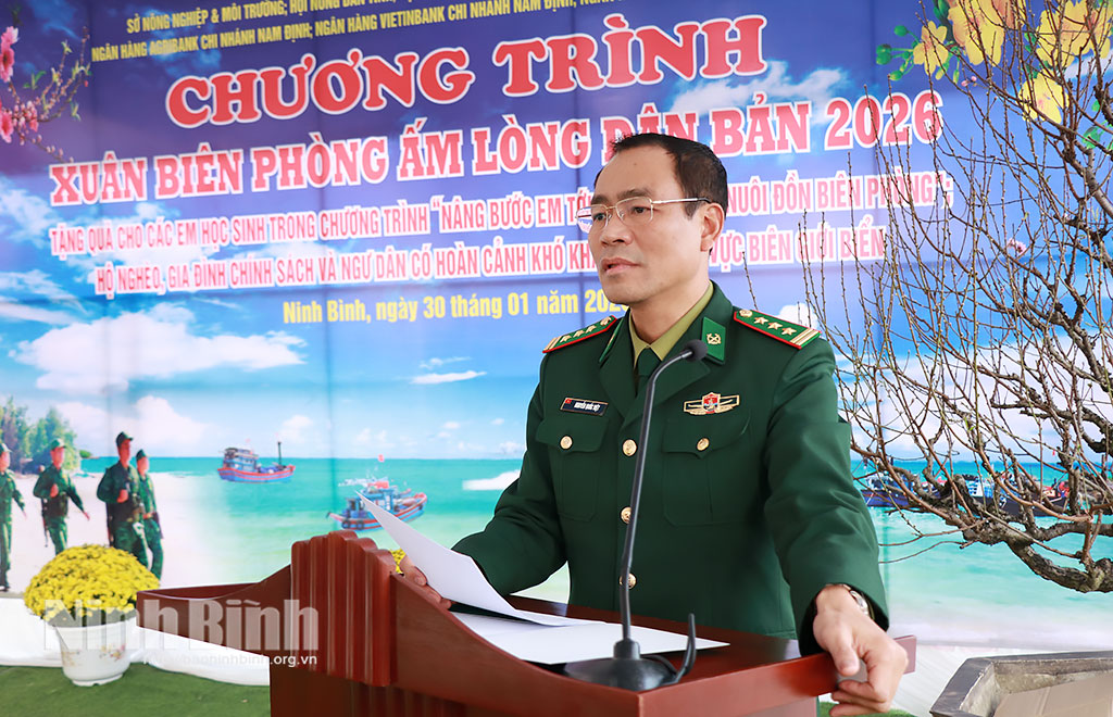 Phát biểu tại chương trình, Thượng tá Nguyễn Quốc Việt, Phó Chính ủy Bộ Chỉ huy Quân sự tỉnh, Bí thư Đảng ủy, Chính ủy BĐBP tỉnh nhấn mạnh: Chương trình “Xuân biên phòng ấm lòng dân bản” là hoạt động thường niên mang ý nghĩa chính trị - xã hội sâu sắc, thể hiện tình cảm, trách nhiệm của cán bộ, chiến sĩ BĐBP tỉnh đối với Nhân dân khu vực biên giới biển. Thông qua chuỗi hoạt động thiết thực, BĐBP tỉnh mong muốn góp phần chia sẻ khó khăn, động viên bà con vươn lên trong cuộc sống, yên tâm bám biển, bám địa bàn, cùng lực lượng Biên phòng xây dựng khu vực biên giới biển vững mạnh, bảo vệ vững chắc chủ quyền, an ninh biên giới quốc gia.