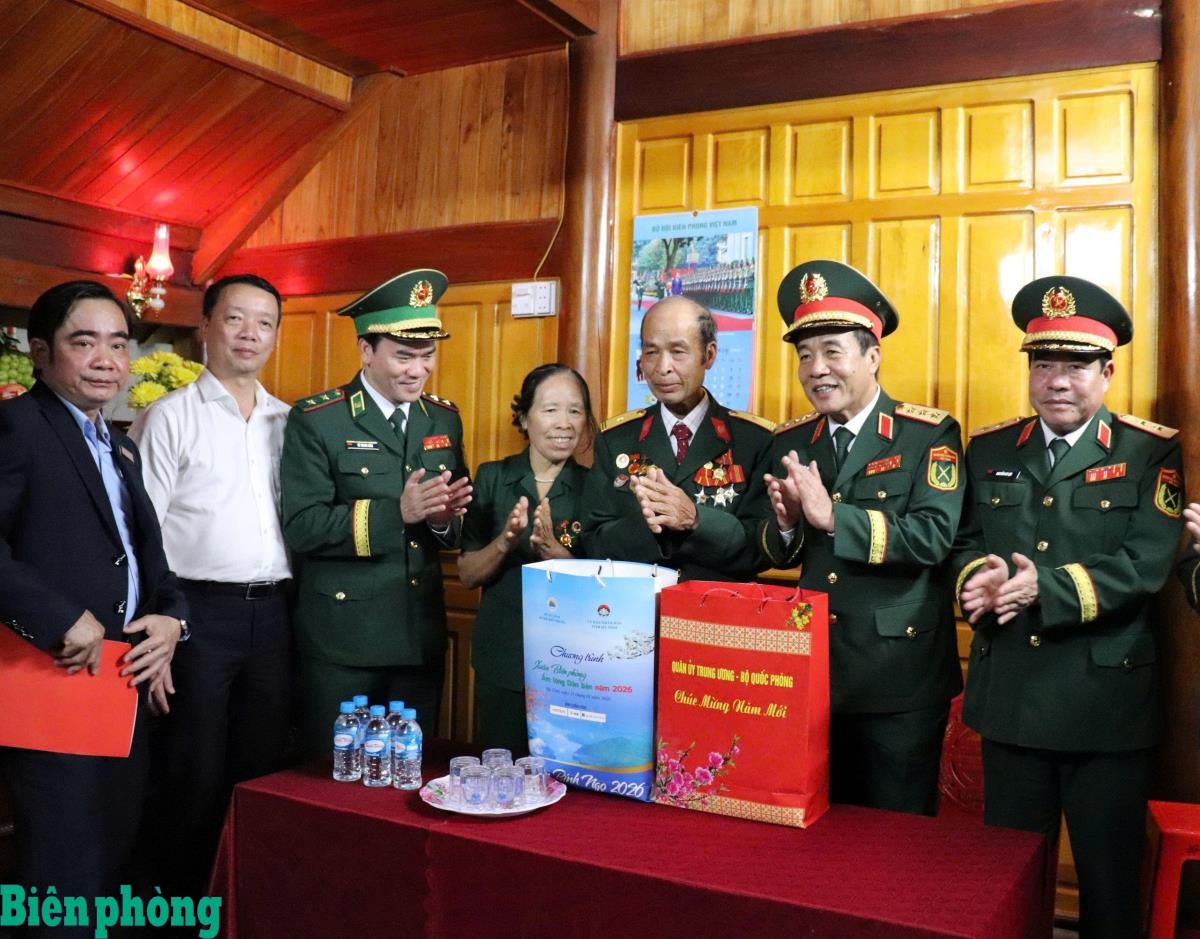 Trong khuôn khổ Chương trình “Xuân Biên phòng ấm lòng dân bản” năm 2026, Thượng tướng Lê Đức Thái, Ủy viên Trung ương Đảng, Ủy viên Quân ủy Trung ương, Thứ trưởng Bộ Quốc phòng (thứ 6, từ trái sang) và Trung tướng Vũ Trung kiên, Ủy viên Trung ương Đảng, Tư lệnh Bộ đội Biên phòng (thứ 3, từ trái sang) cùng các đại biểu đến thăm, tặng quà, chúc Tết gia đình cựu chiến binh Trần Mạnh Hùng, 75 tuổi, ở thôn Vĩnh Úc, xã Hương Xuân, tỉnh Hà Tĩnh. Ảnh: Viết Lam