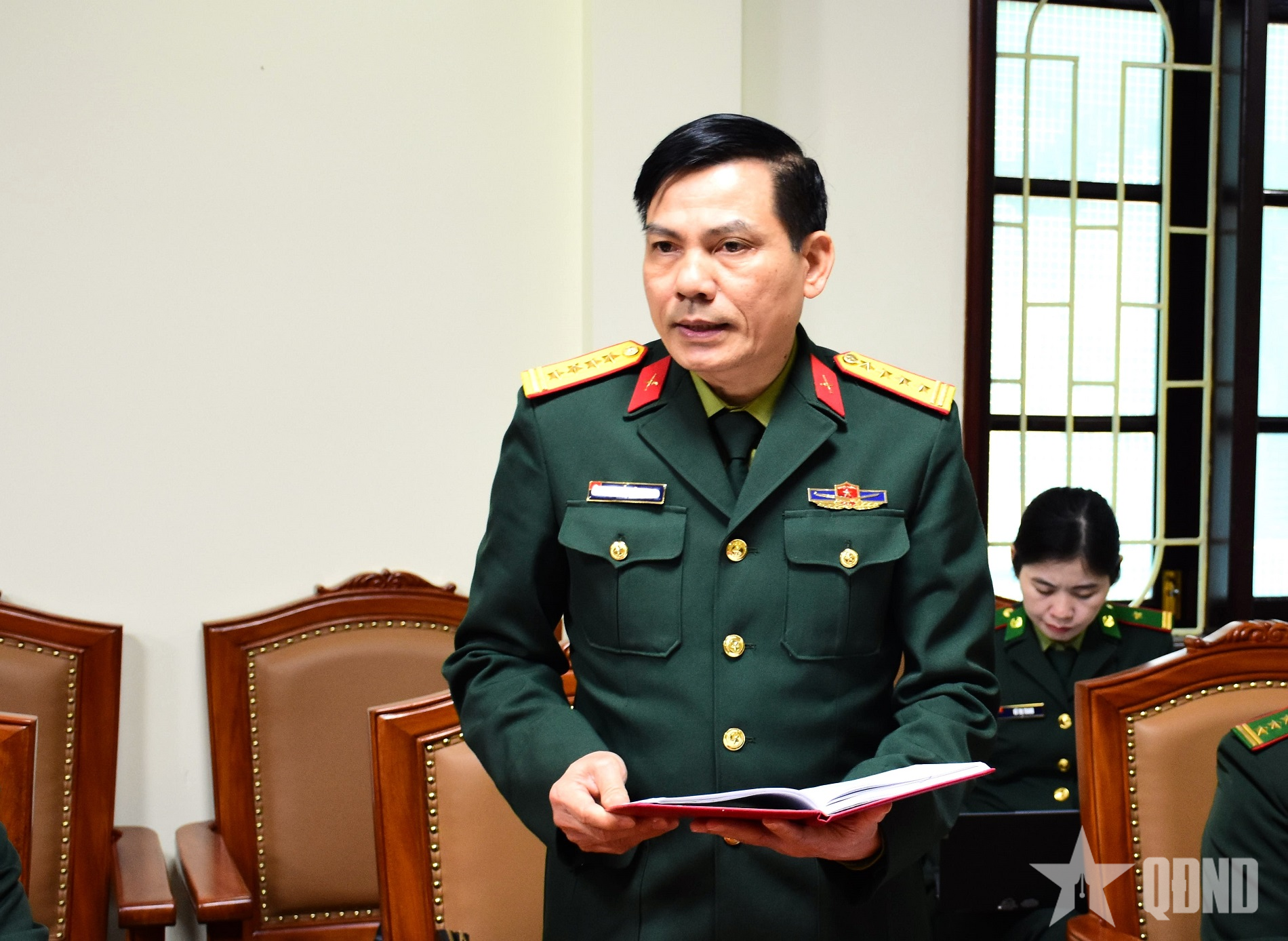 Thượng tướng Lê Đức Thái, Ủy viên Trung ương Đảng, Thứ trưởng Bộ Quốc phòng chủ trì làm việc.
