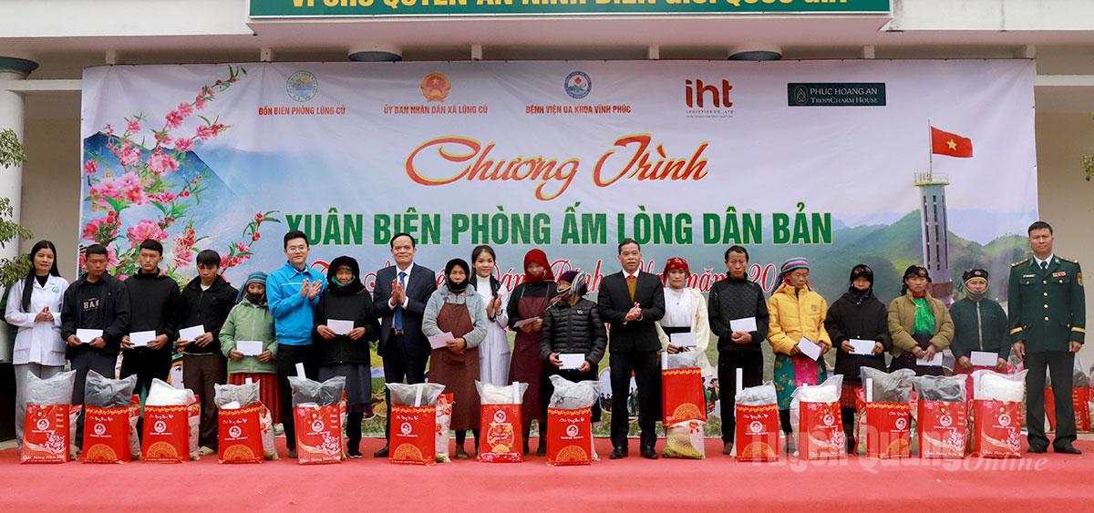 Lãnh đạo Bệnh viện đa khoa Vĩnh Phúc, xã Lũng Cú và Đồn Biên phòng Lũng Cú tặng quà cho các gia đình có hoàn cảnh khó khăn.