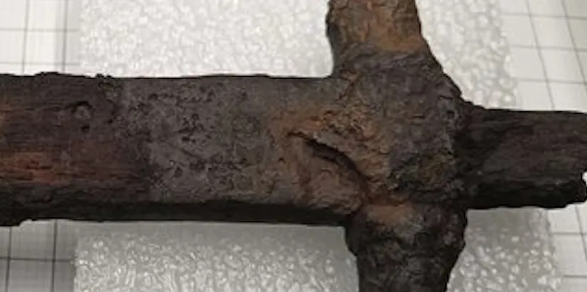 Cuối cùng, các chuyên gia đã tìm thấy một cái tên được khắc trên lưỡi kiếm, ẩn sau lớp gỉ sét dày. Ảnh: @Đại học Jena.