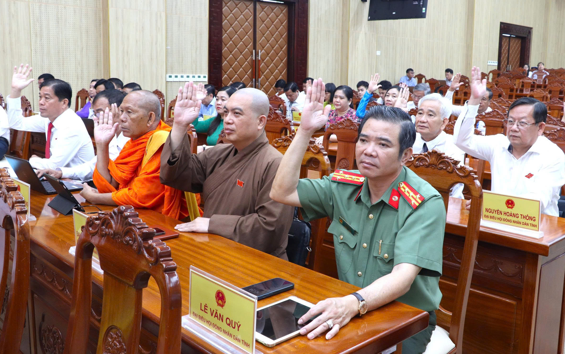 Đại biểu HĐND tỉnh An Giang biểu quyết thông qua các nghị quyết