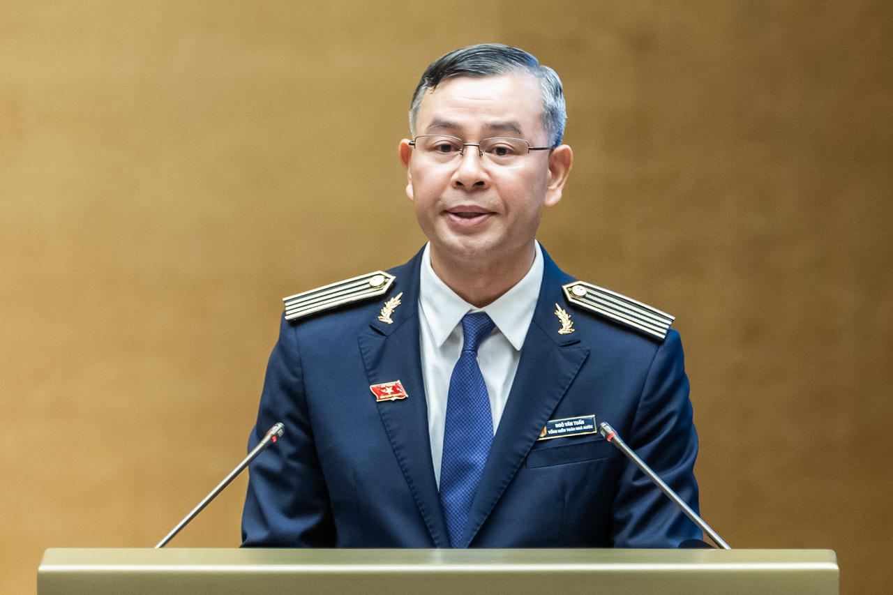 Tổng Kiểm toán Nhà nước Ngô Văn Tuấn báo cáo trước Quốc hội (Ảnh: Quang Vinh)