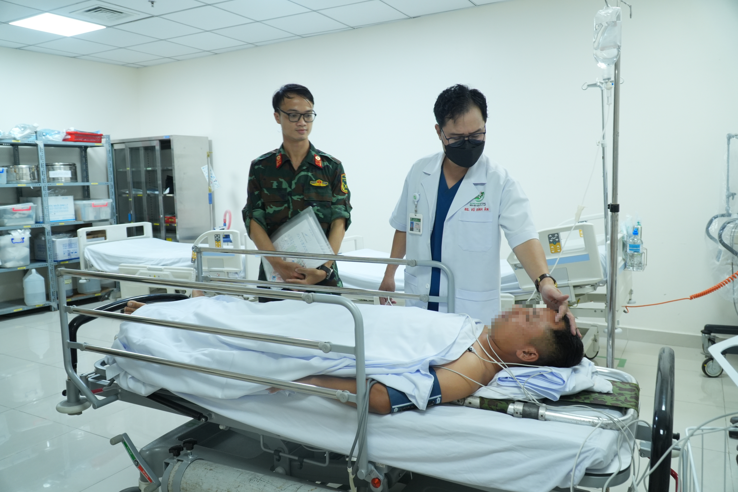 Ngay sau khi máy bay hạ cánh tại Bệnh viện Quân y 175, 2 bệnh nhân được tiếp nhận, thực hiện xét nghiệm chuyên sâu, hội chẩn và điều trị kịp thời.