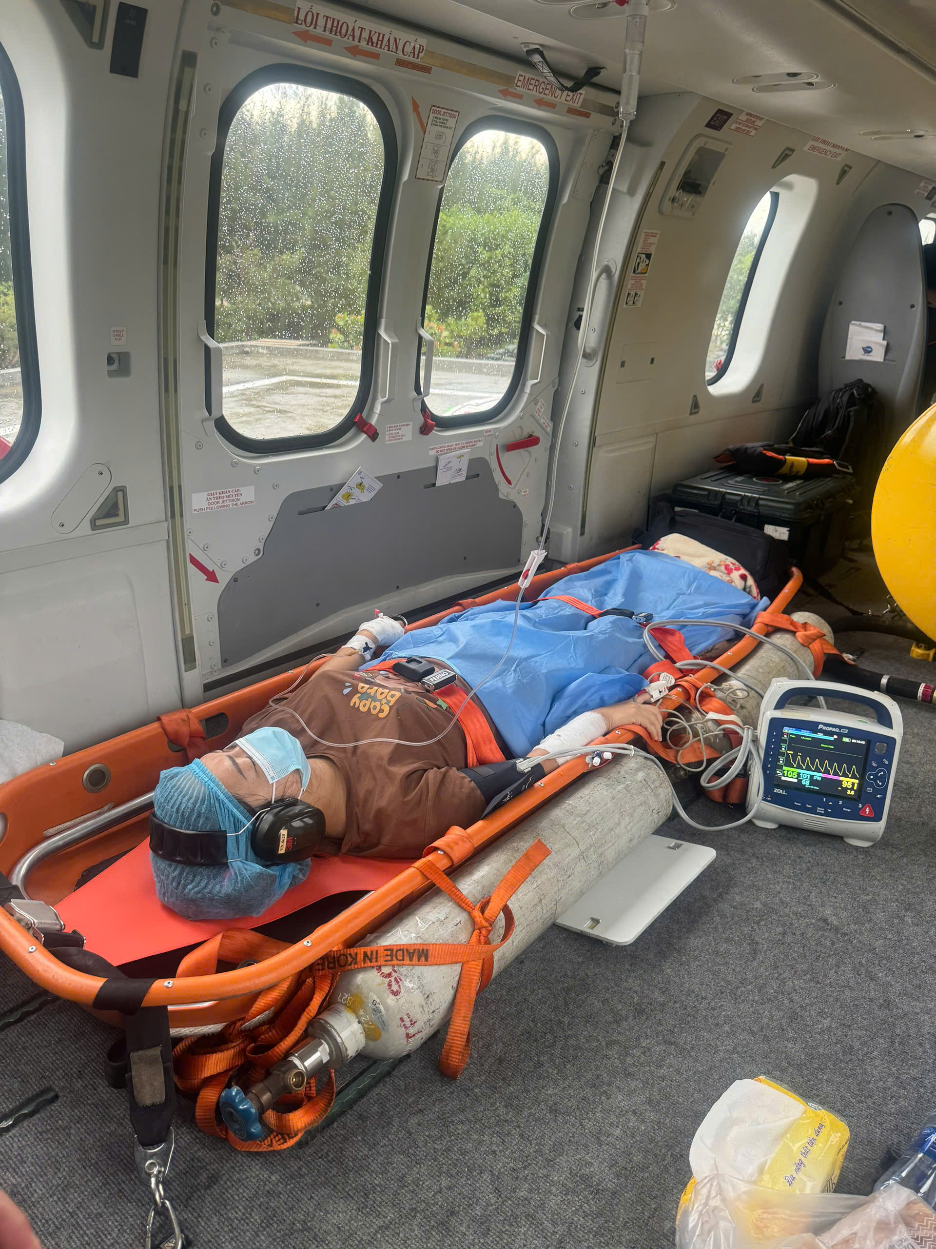Sau hơn 1 giờ 30 phút can thiệp tích cực, tình trạng bệnh nhân ổn định và đủ điều kiện vận chuyển bằng đường không vào đất liền.