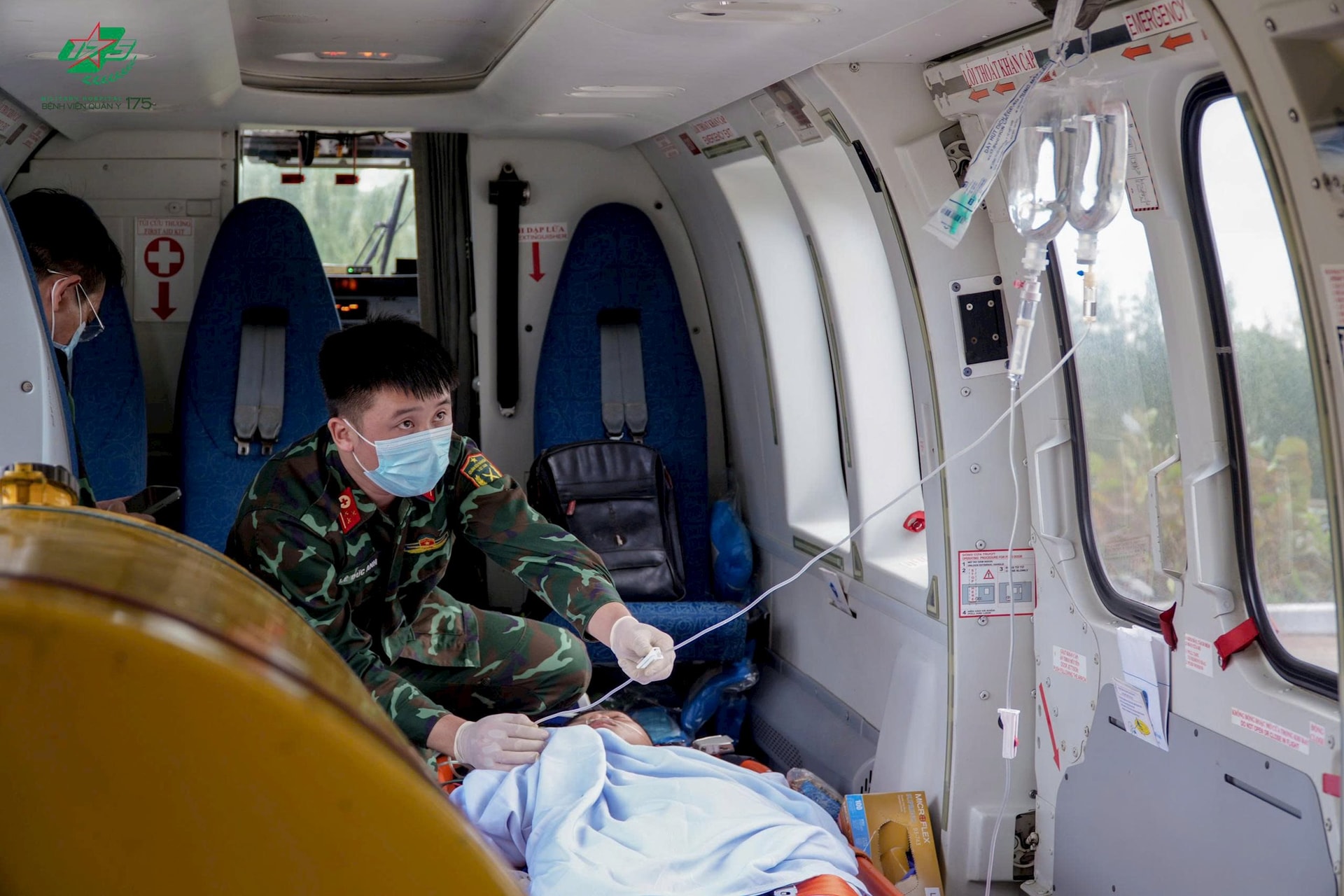Đến 0h30 ngày 15/1, chuyến bay cấp cứu trong đêm tiếp cận bệnh nhân trong tình trạng hôn mê, suy hô hấp, được đặt nội khí quản, hỗ trợ thở máy và vận chuyển an toàn về đất liền.