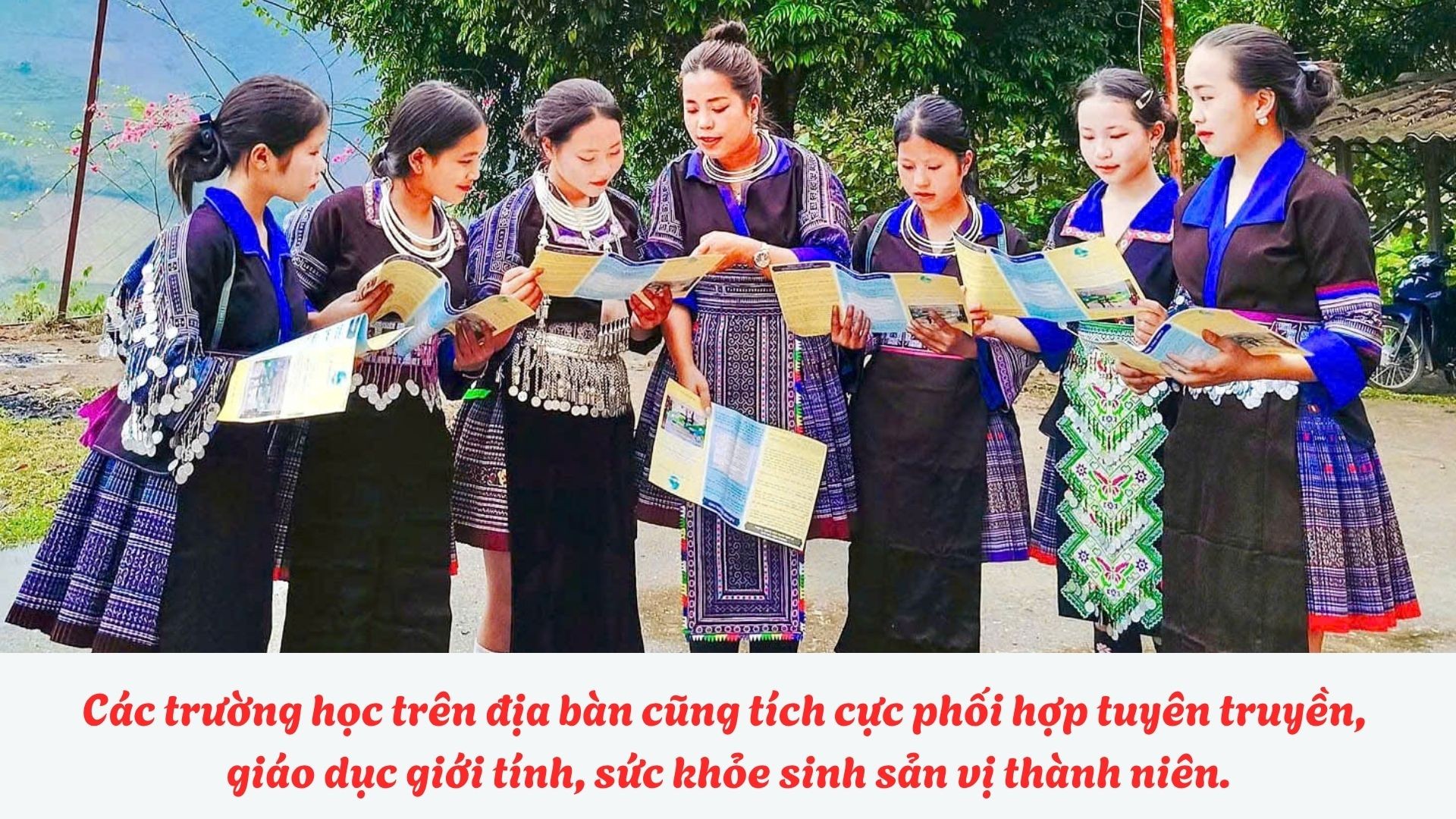 Các trường học trên địa bàn cũng tích cực phối hợp tuyên truyền, giáo dục giới tính, sức khỏe sinh sản vị thành niên. Nhiều giáo viên coi việc vận động học sinh không bỏ học, không kết hôn sớm là nhiệm vụ gắn liền với công tác giảng dạy. Công tác tuyên truyền được đổi mới cả về hình thức lẫn nội dung.